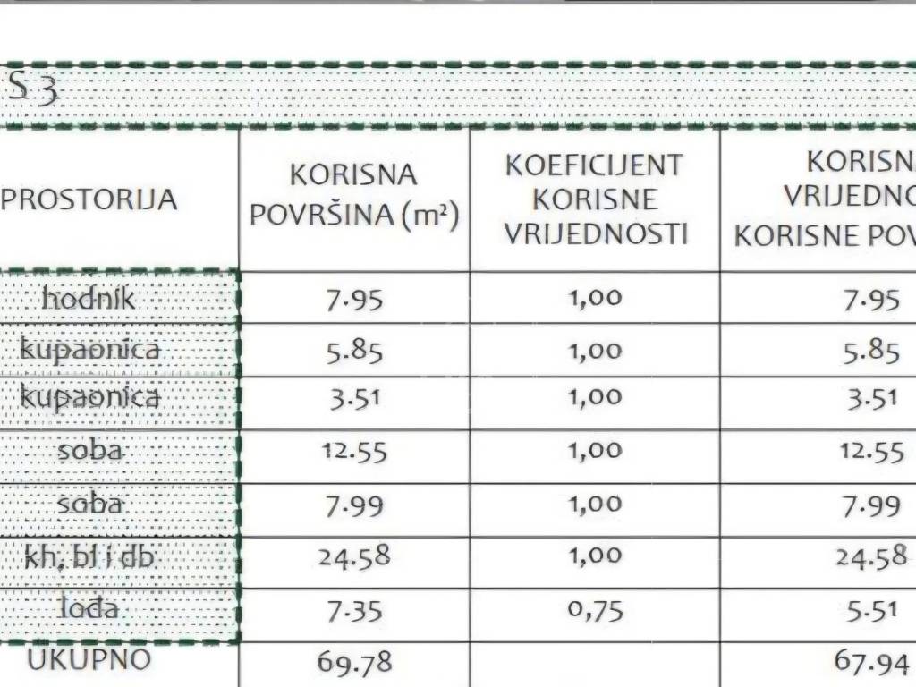 Ukupna površina stana sa svim pripatcima iznosi: 81.70 m2.
