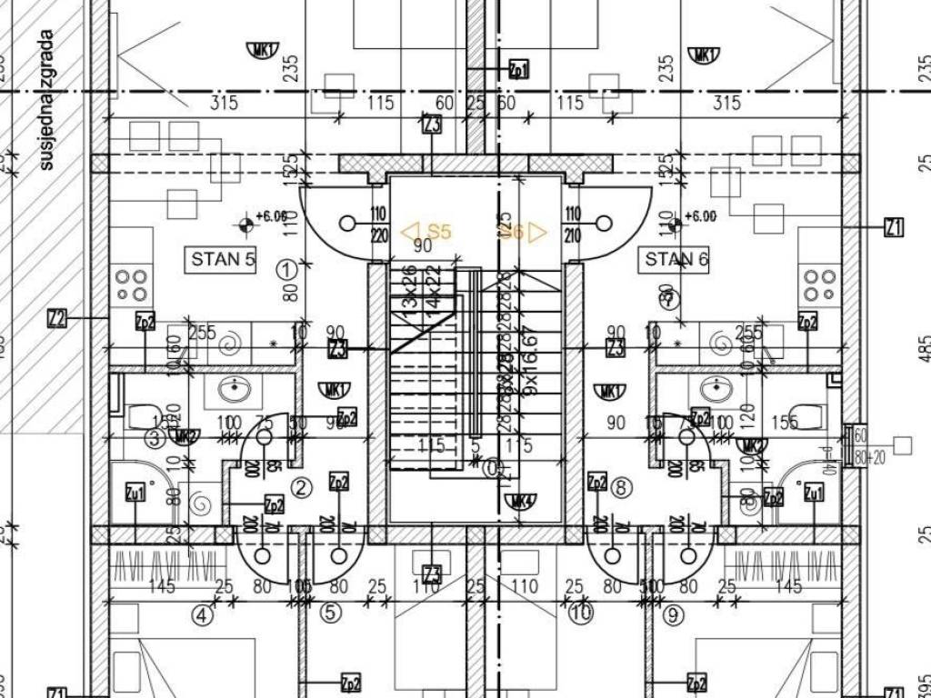 8. Na svim stanovima dolaze blindo vrata, pa i na manjoj zgradi gdje je otvoreno stubiste (vodootporna i vatrootporna).