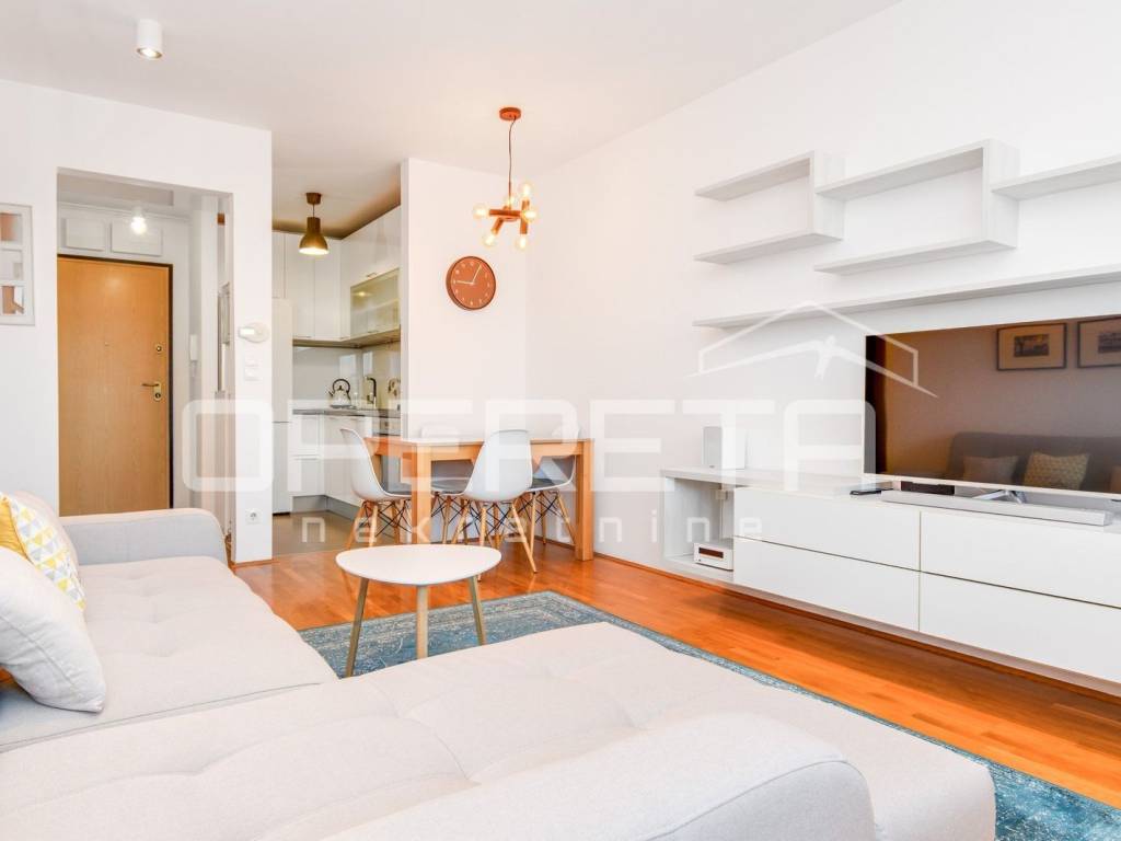 Two-bedroom apartment for rent in a newer building with an elevator and a garage parking space on the -1 floor.