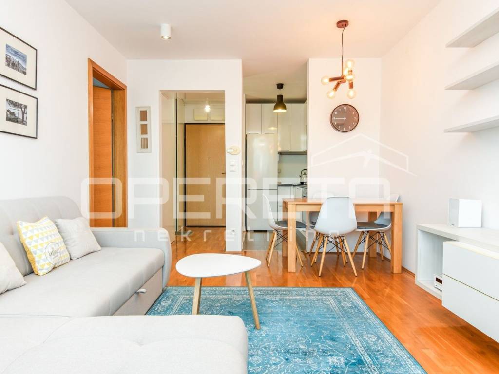 The apartment is 40m2 and consists of a hallway, bathroom, kitchen, bedroom and living room with access to a loggia. Modern, bright and very comfortable.
