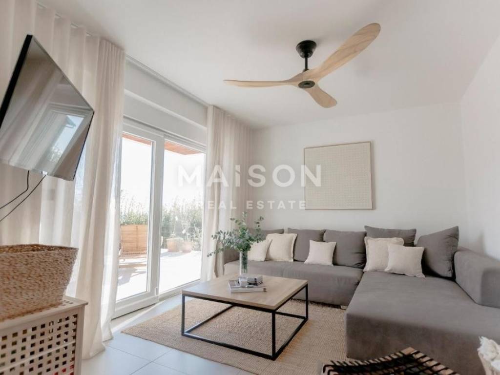 The landscaped garden is enriched with Mediterranean plants and greenery. A highlight of the property is the heated swimming pool, perfect for year-round enjoyment. There is also a barbecue area, a small garden house, and two private parking spaces.