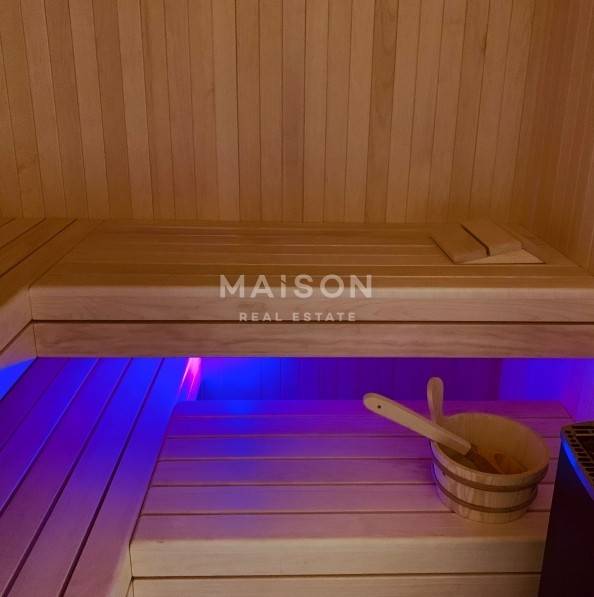 The basement is dedicated to relaxation and wellness, featuring a Finnish sauna, a lounge area with sunbeds, and a modern bathroom. An outdoor staircase leads to the ground floor, where there is a spacious kitchen with dining area and living room, opening onto a terrace with a breathtaking sea view. On this level there is also a hallway, a bedroom with en-suite bathroom and toilet, as well as a practical laundry room.