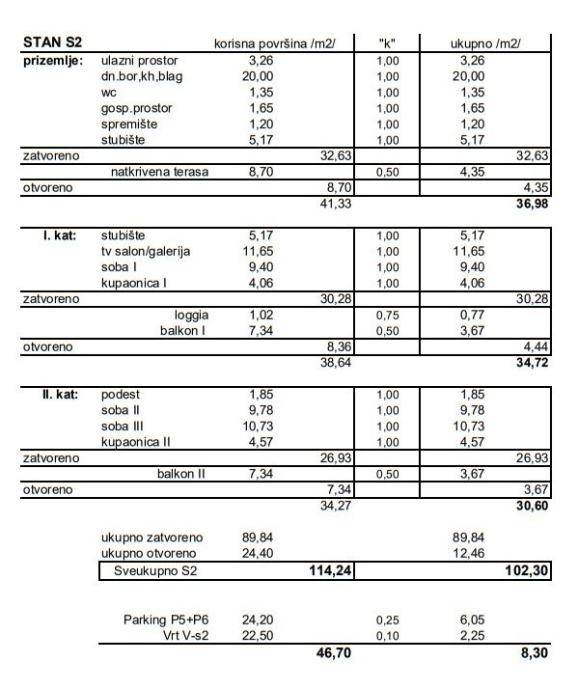 - apartmanu pripada vrt i dva etažirana parkirna mjesta,