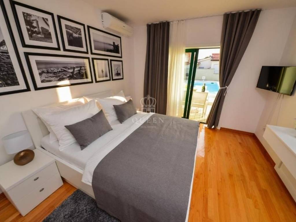 Prodaje se prekrasno uređena villa sa 3 stana na atraktivnoj lokaciji, drugi red do mora. Villa se nalazi u blizini svih potrebnih sadržaja za ugodan odmor i/ ili život. Uhodana je za iznajmljivanje i po ocijenama postignutim na booking-u ima izrazito visoke preporuke od strane gostiju.