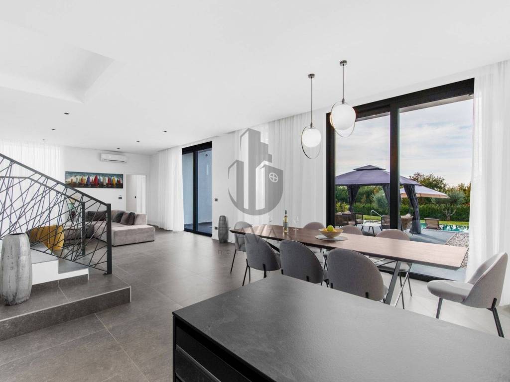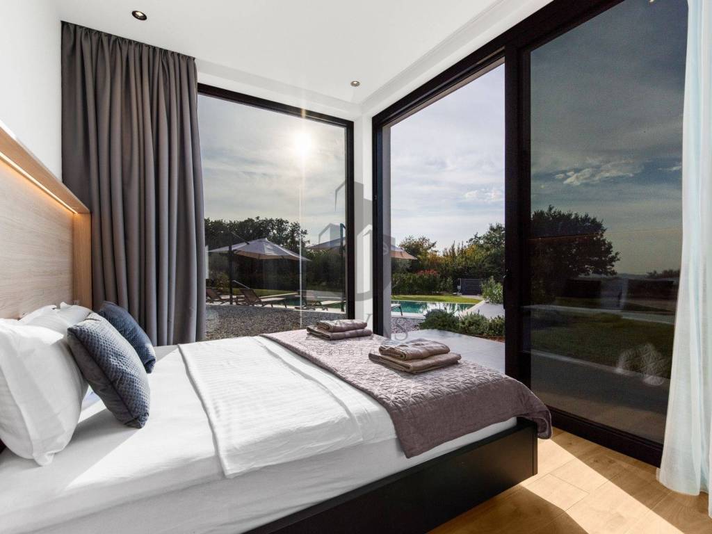 Property Description: Villa Nura is a stunning luxury villa located in the peaceful surroundings of Kaštelir, Istria. This modern villa offers everything you need for a relaxing vacation, ensuring privacy and comfort for its guests. With a living area of 306 m, the villa is spacious and can comfortably accommodate up to 8 guests in 4 elegantly furnished bedrooms, each with its own en-suite bathroom. Combining sophisticated design with luxurious amenities, Villa Nura offers the perfect balance of modern luxury and natural serenity.