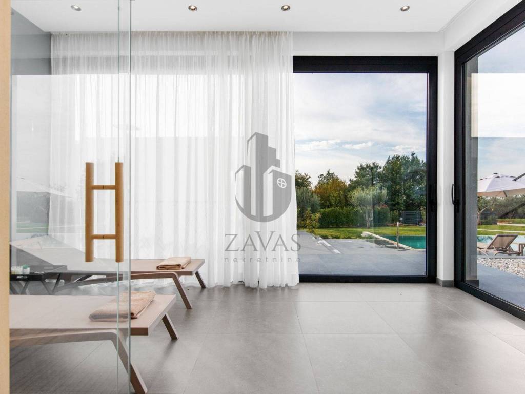 Sadržaji vile: Vila raspolaže brojnim luksuznim sadržajima. Vanjski prostor uključuje grijani bazen sa slanom vodom veličine 52 m, jacuzzi, sunčalište s ležaljkama, te vanjsku kuhinju s roštiljem za uživanje u blagodatima otvorenog prostora. Vila je idealna za obitelji jer je opremljena dodatnim pogodnostima kao što su dječja kolijevka i baby-friendly oprema. U unutrašnjosti vile nalazi se sauna, potpuno opremljena kuhinja i prostran dnevni boravak s pogledom na vrt.