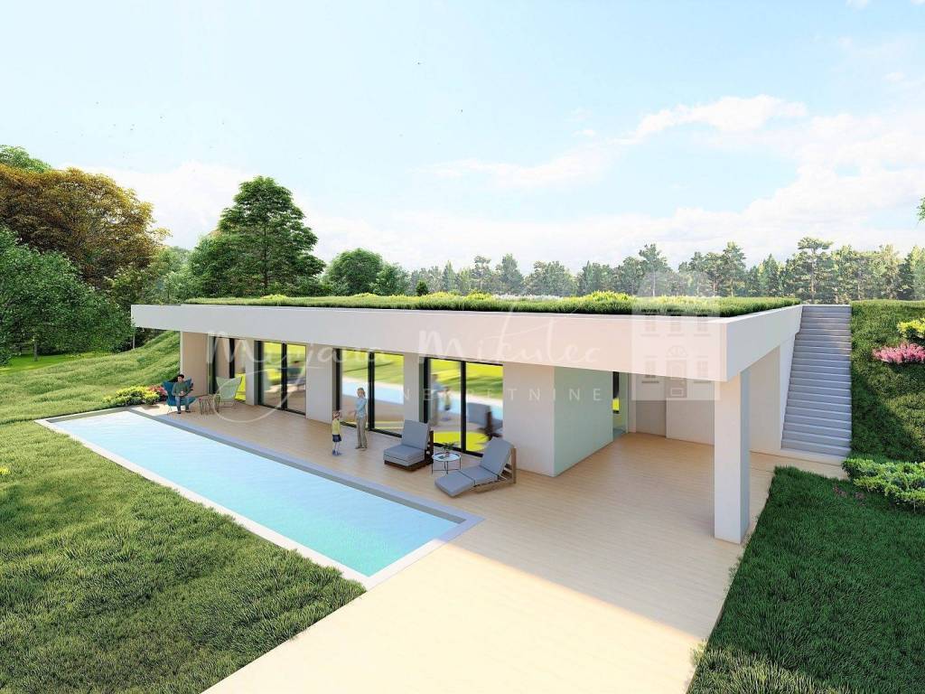 Ova moderna kuća s vanjskim bazenom nalazi se u malom mjestu u blizini Zagreba. Lokacija ove nekretnine može se pohvaliti vrlo mirnim susjedstvom s prekrasnim panoramskim pogledom na obronke Medvednice i zelene doline u njenom podnožju. Pogodna je za stanovanje izvan gradske vreve uz odličnu željezničku povezanost sa gradom Zagrebom od svega 25 minuta, te blizinu vrtića, osnovne i srednje škole.