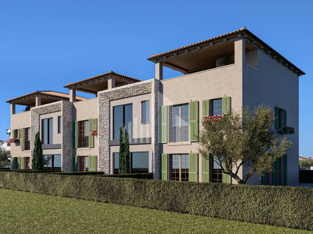 Prodaje se moderna kuća u nizu smještena u mirnom dijelu, samo 2.5 km od centra Poreča. Kao posljednja u nizu, ova nekretnina pruža dodatnu privatnost i prostire se na tri etaže.