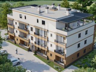 The apartment is equipped with underfloor heating in all rooms, an ecological system to reduce electricity consumption, and air conditioners for optimal cooling. The floors will be covered with high-quality ceramic tiles and laminate. The PVC joinery is equipped with electric blinds and glass filled with argon for optimal insulation. The entrance door is anti-burglary and anti-fire, providing a sense of security. The building has an elevator.