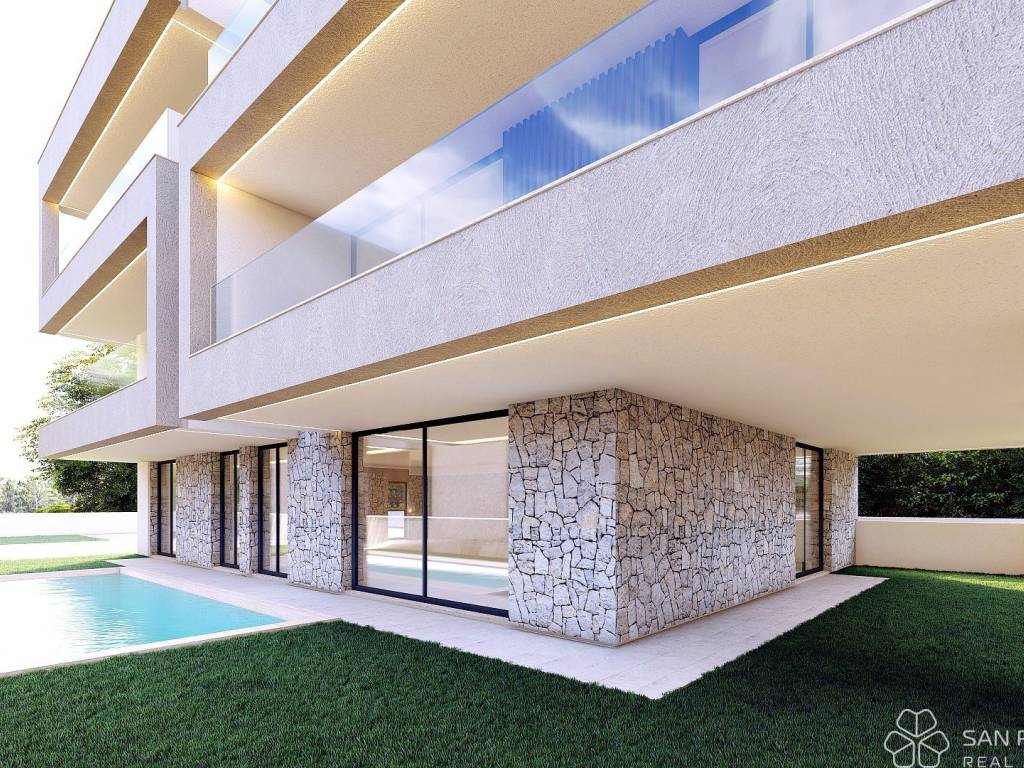 Apartment S1 is located on the ground floor and consists of: hallway, living room, kitchen and dining room, 3 bedrooms (9.45 m2 + 9.90 m2 + 11.55 m2), 2 bathrooms, toilet, laundry room, 2 covered terraces and covered garden (33.20 m2 + 1.75 m2). The apartment also has a private pool, 2 parking spaces and a storage room on the ground floor.