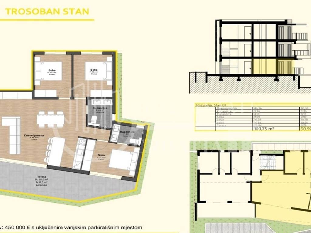 PRODAJA NOVOGRADNJA ROGOZNICA, STUPIN ČELINE Stan S1 prizemlje 90,97 m neto površine