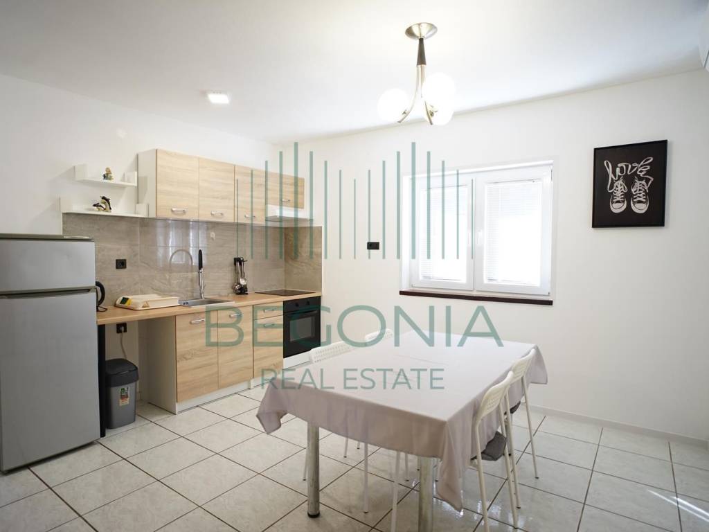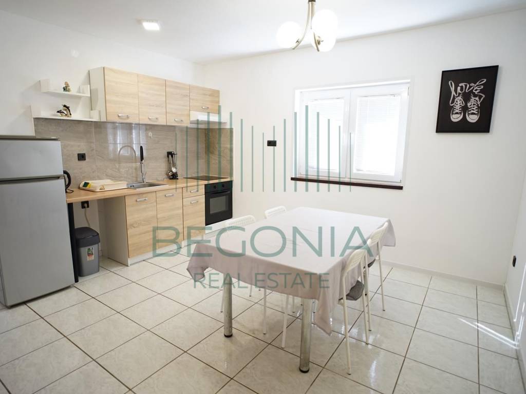 Prodaje se stan 53,67 m2 na prvom katu, koji je podijeljen u dva apartmana. Jednosoban apartman sastoji se od kuhinje i blagovaone, dnevnog boravka, spavaće sobe. Dvosoban stan sastoji se od dvije spavaće sobe, dnevnog boravka, kuhinje i blagovaone iz kojih se izlazi na prostranu natkrivenu terasu sa pogledom na more. Grijanje je izvedeno uz pomoć klima jedinica. Stanu pripada parkirno mjesto.