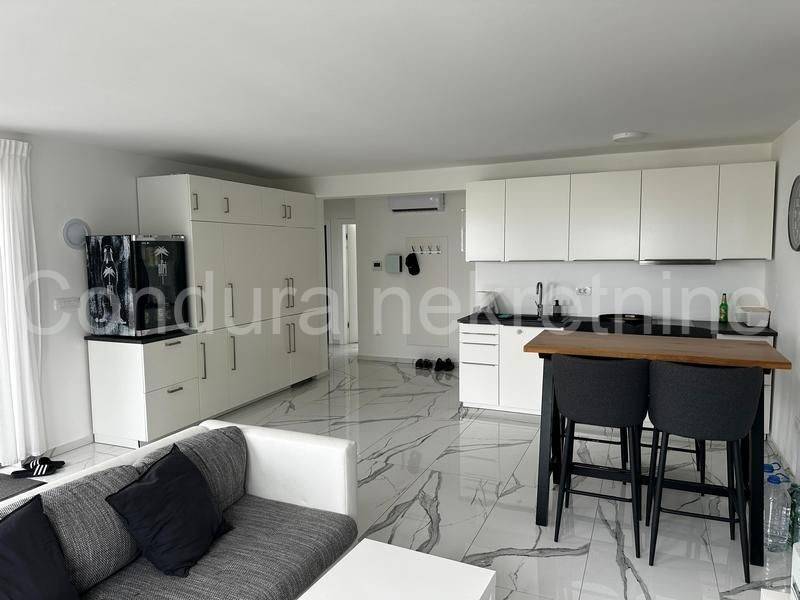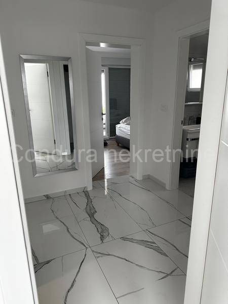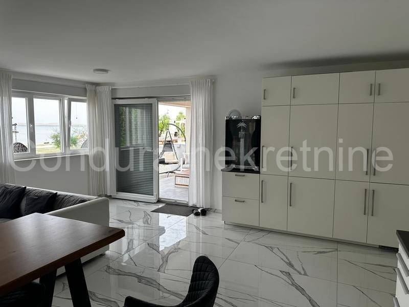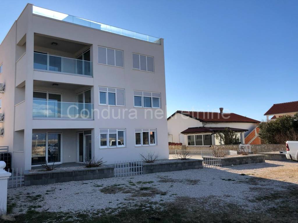 Apartment for sale on the ground floor of a newer building built in 2019. The apartment consists of a living room, hallway, bathroom, toilet, three bedrooms and a covered terrace with a beautiful open view of the sea and Velebit. It also has two parking spaces and a 29 m2 yard. The total net area of the apartment with all accessories is 90.52 m2.