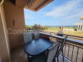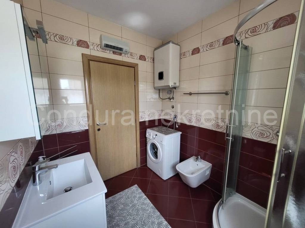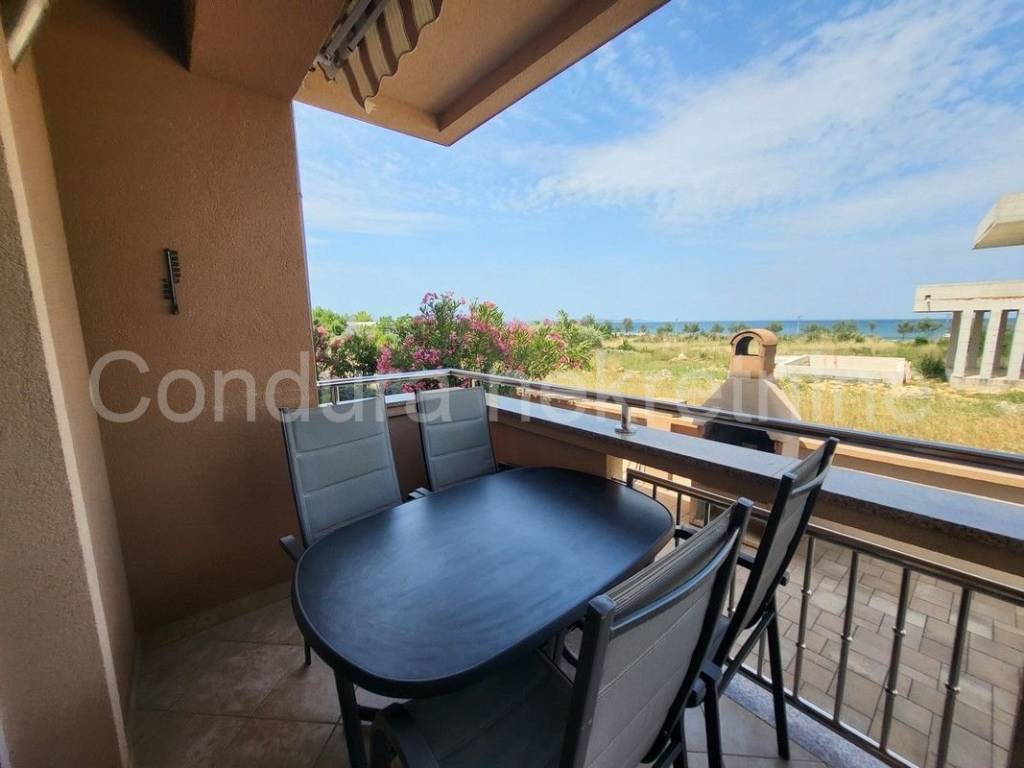 The apartment consists of: a comfortable living room with a kitchen and a dining room, two bedrooms, a bathroom with a window equipped with the necessary appliances and sanitary ware, and a covered terrace. The kitchen, bedroom and terrace offer a beautiful open view of the sea and the surrounding area.