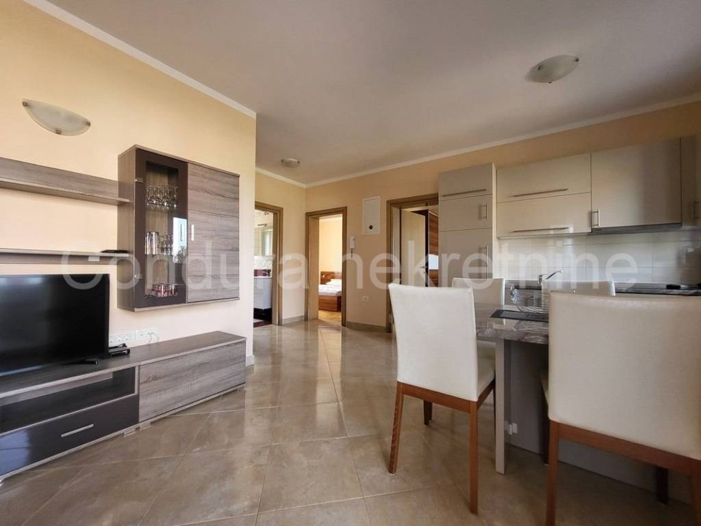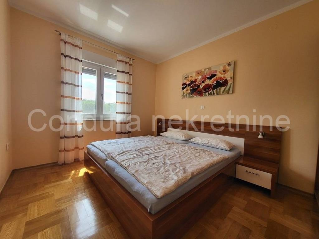 Zaton - for sale is a beautifully decorated, fully furnished two-room apartment with a net usable area of 71.94 m2 on the ground floor, with a sea view, only 200 m from the sea and the beach. It is located in a residential building with a total of 4 apartments.