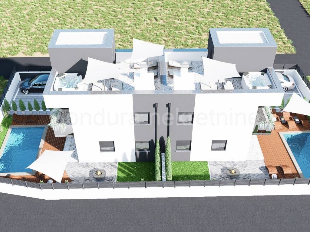 The total net area of the individual apartment will be 98.26 m2, and it will cover the ground floor and the 1st floor. It will have a swimming pool and a roof terrace.