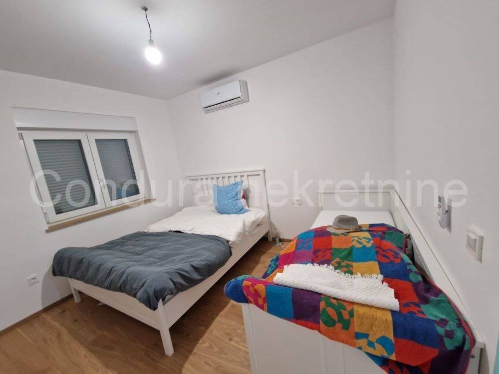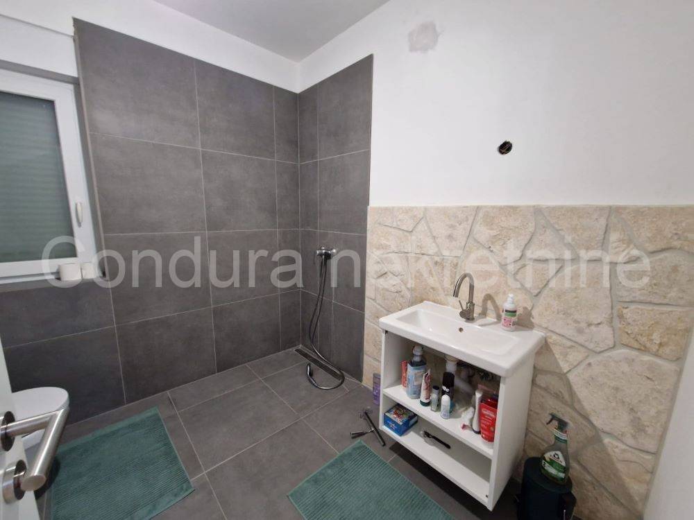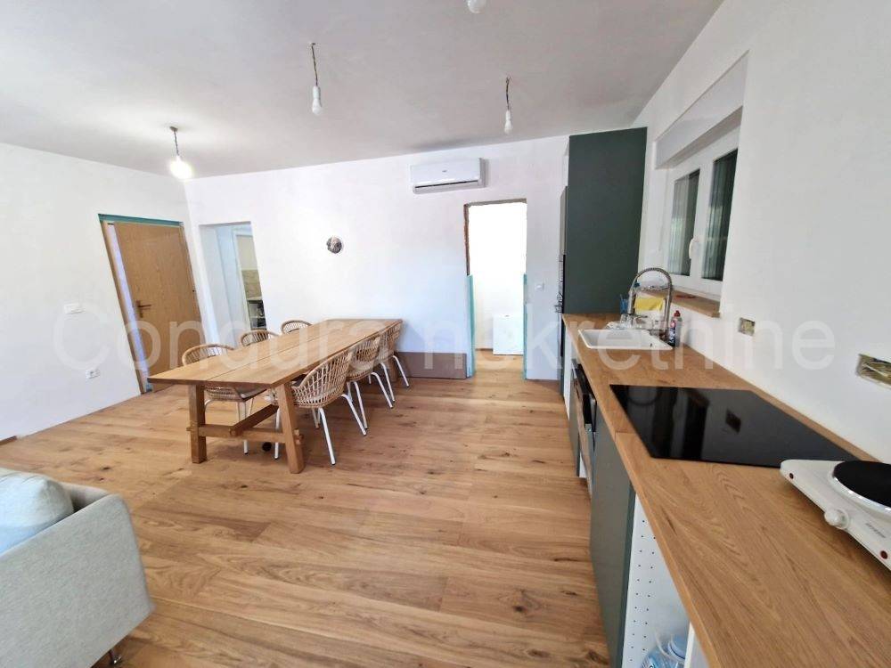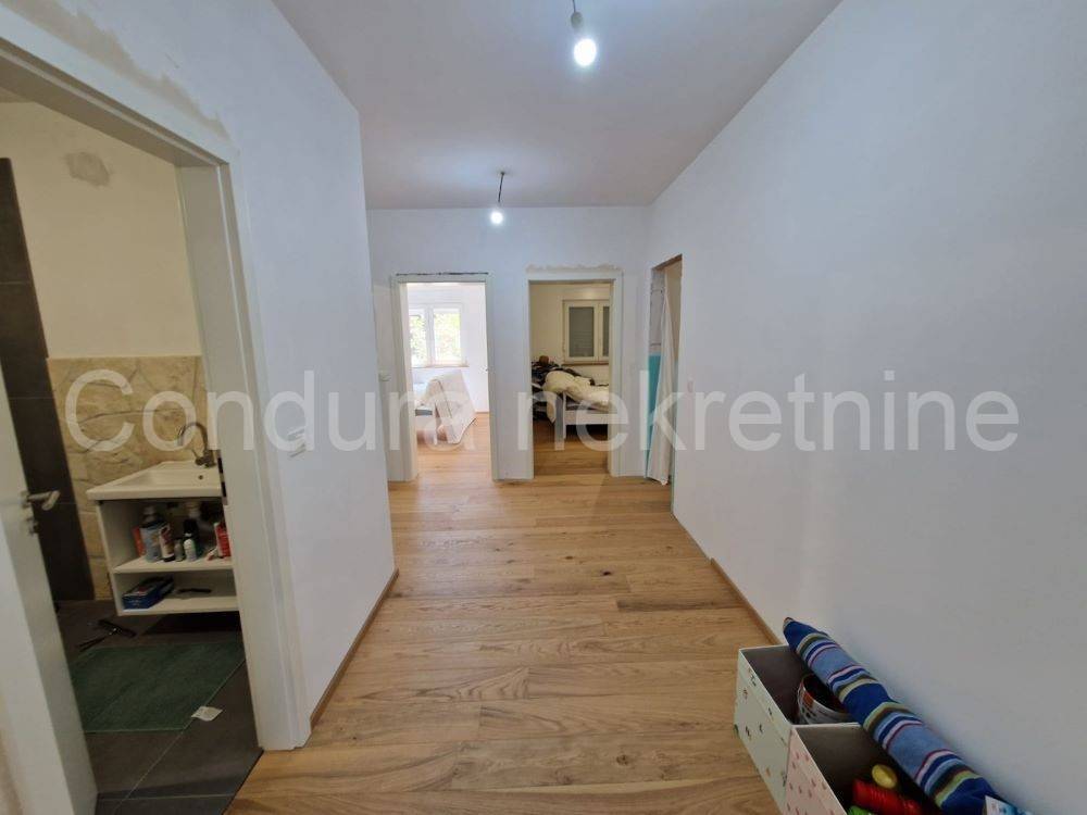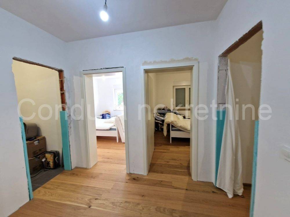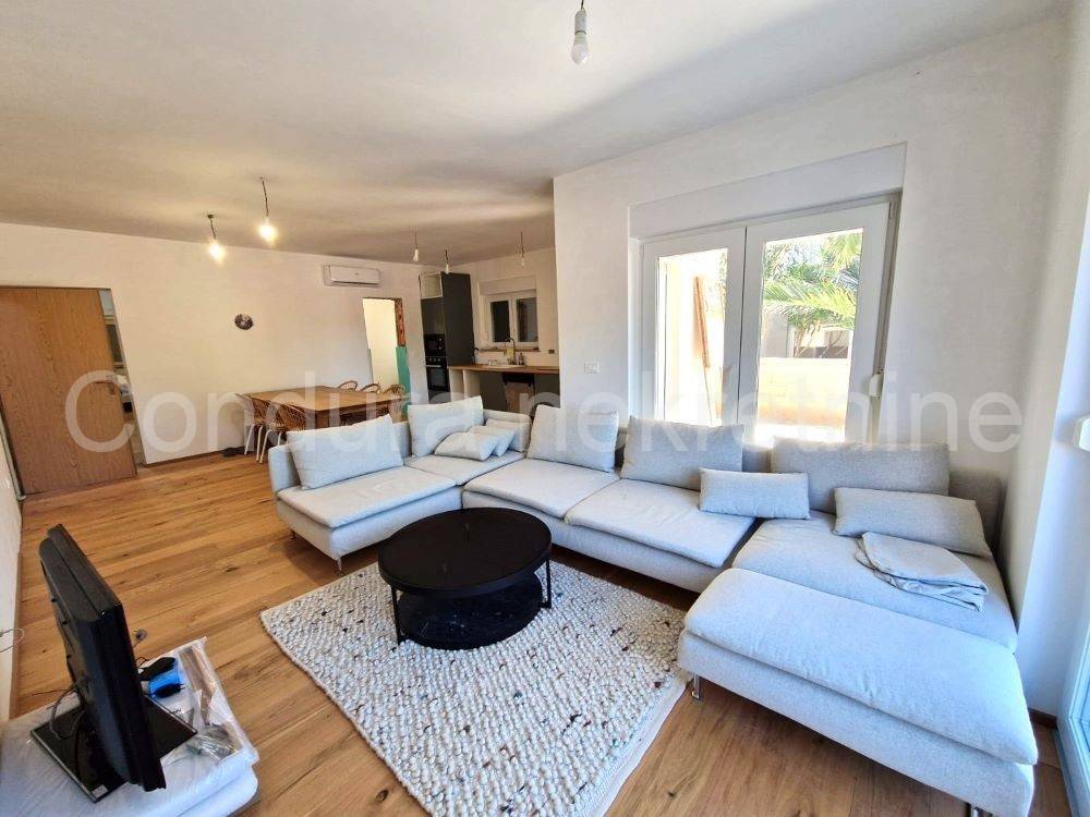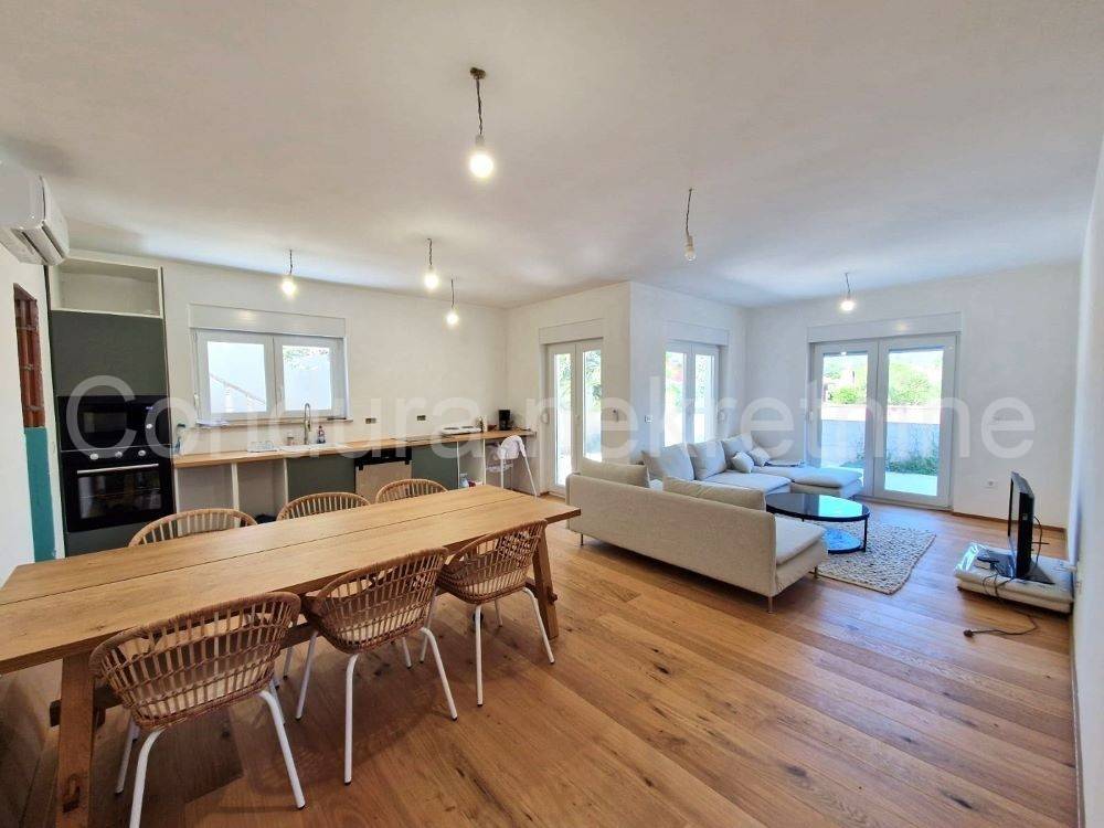 It consists of akitchen with a living room and a dining room - 34 m2 - (open space)from which there is access to anoutdoor covered terrace and garden.There is astorage areanext to the kitchen. The part of the apartment that is separated from the dining area leads through thehall to 3 bedrooms, a bathroom and a toilet.