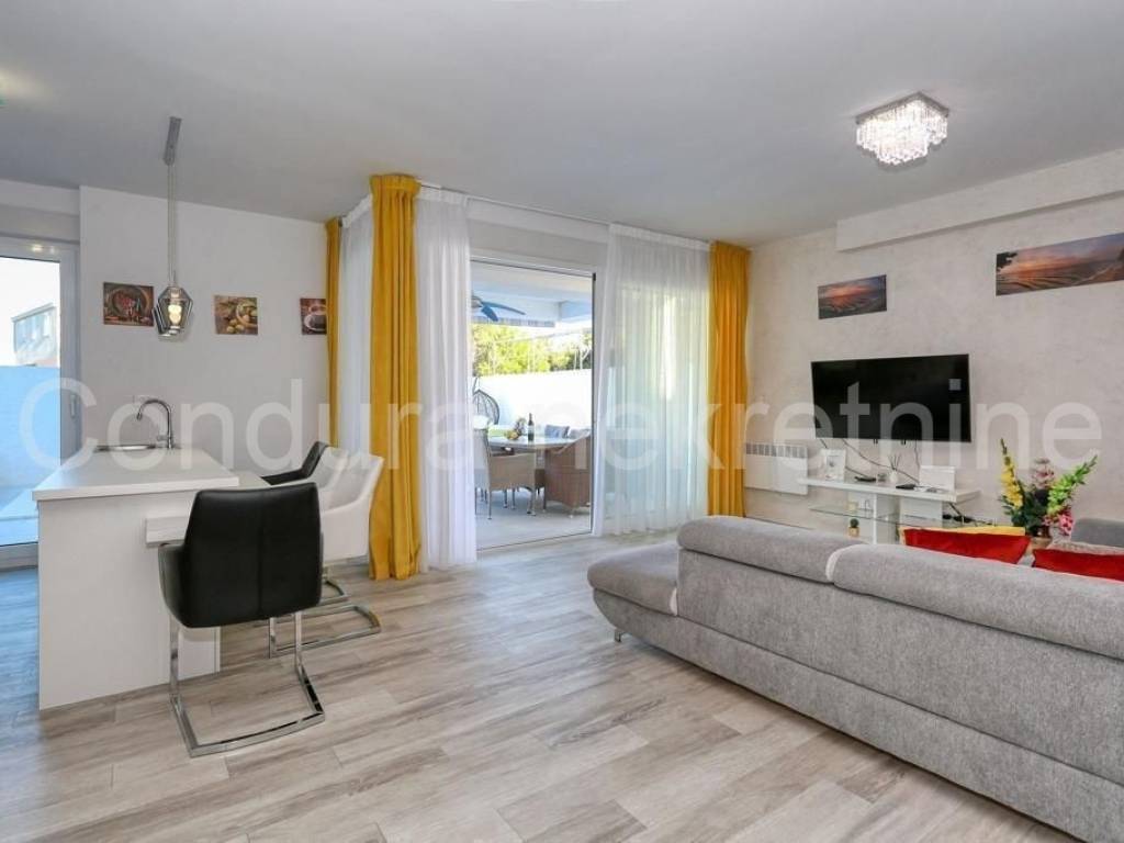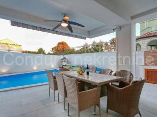 For sale is a modern (semi-detached) villa with a swimming pool in an excellent location only 150 m from the sea in Zaton.