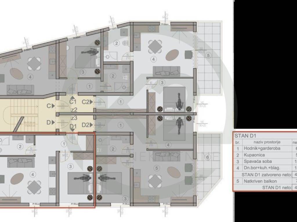 Ulazni hodnik Otvorena kuhinja i dnevni boravak Jedna spavaća soba Jedna kupaonica Prostrana terasa savršena za uživanje u jutarnjoj kavi ili večernjim zalascima sunca
