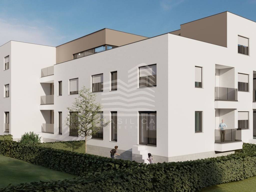 PURCHASE DIRECTLY FROM INVESTORS, BUYER DOES NOT PAY AGENCY COMMISSION OR REAL ESTATE TAX!Botinec, quiet location at the entrance to the village Botinec, new project of a total of 18 apartments. The building has an elevator and consists of ground floor with garden, 1st and 2nd floor with loggia or balcony, and 3rd floor with terraces. The building has: 2 bedroom apartments from 47m2 to 48m2, 3 bedroom apartments from 62m2 to 65m2, and 4 bedroom apartments from 92m2. Construction will start in March 2022, and reservations are being accepted at this stage. Completion is expected in March 2023.Project - BOTINEC - URBAN VILLACOMPLETE PROJECT WITH LIST OF AVAILABLE APARTMENTS, PICTURES AND FLOOR PLANS SEE AT:https://www.basilica.hr/projektiPRICE: 2.100 / m2The apartment marked S1, two bedrooms, is located on the ground floor and consists of: hallway, living room with kitchen and dining room, bathroom and two bedrooms, total living area of 59.22 m2, and a garden of 12 m2 and an outdoor parking space of 12 m2. The total sales area is 63.42 m2.With each apartment it is mandatory to purchase storage from 3m2 to 8m2, brick, odds. 0.75 x price m2.EQUIPMENT:- B energy certificate- construction: reinforced concrete- Styrofoam facade and stone wool (fireproof).- staircase insulated- PVC joinery with three panes- white interior carpentry- condensing boilers- oak parquet- 1st class tiles- toilets - bathtubs or showers, depending on the apartment, and a built-in cistern with a hanging shell.- air conditioning- anti-burglary and fire doors- intercomLOCATION: Botinec, a quiet village located in Novi Zagreb - west, south of Lanište. The settlement itself has all the necessary facilities - shops, bakeries, kindergarten, elementary school and health center. There is a bus stop nearby. The village is in a quiet environment of family houses and smaller buildings.