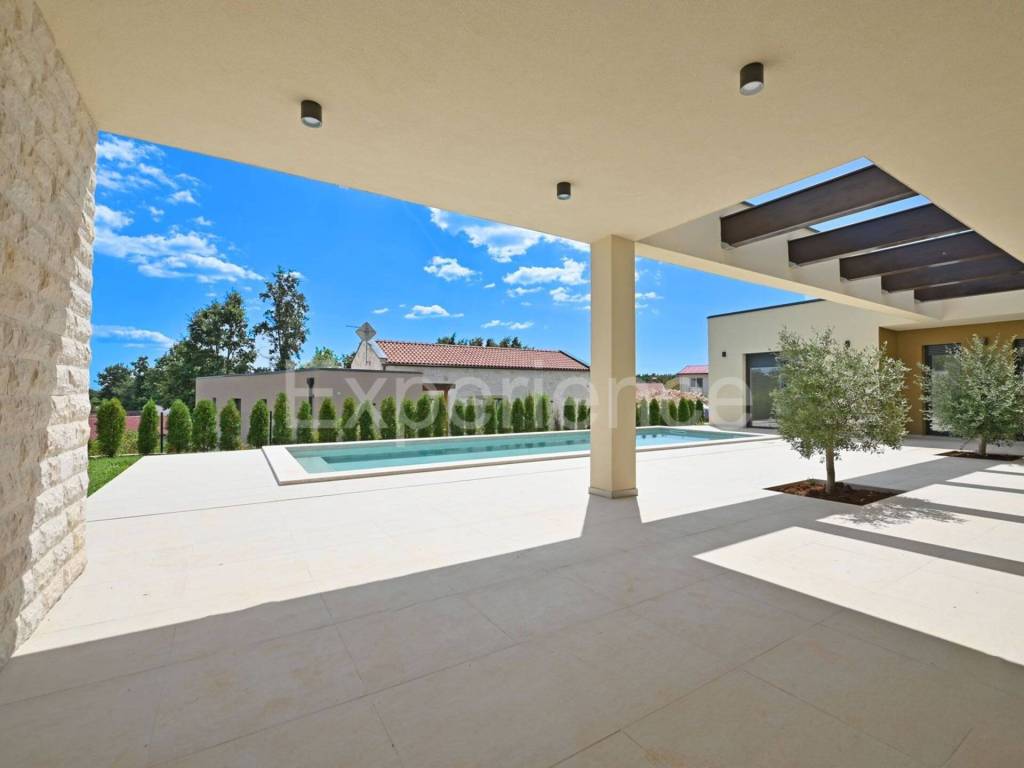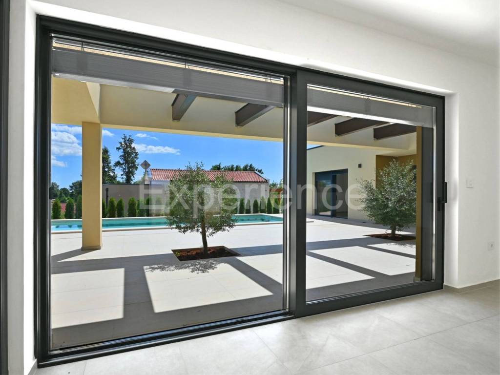 In the heart of the tranquil Istrian countryside, just 26 km from Rovinj and the sea, a contemporary villa is for sale that blends luxury, comfort and the natural charm of Istria. Surrounded by greenery, in a peaceful rural setting, it offers the perfect balance of privacy and proximity to all amenities.