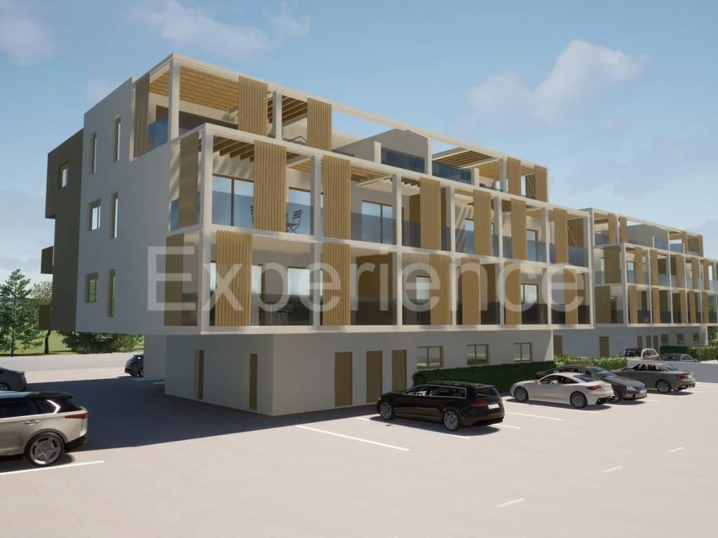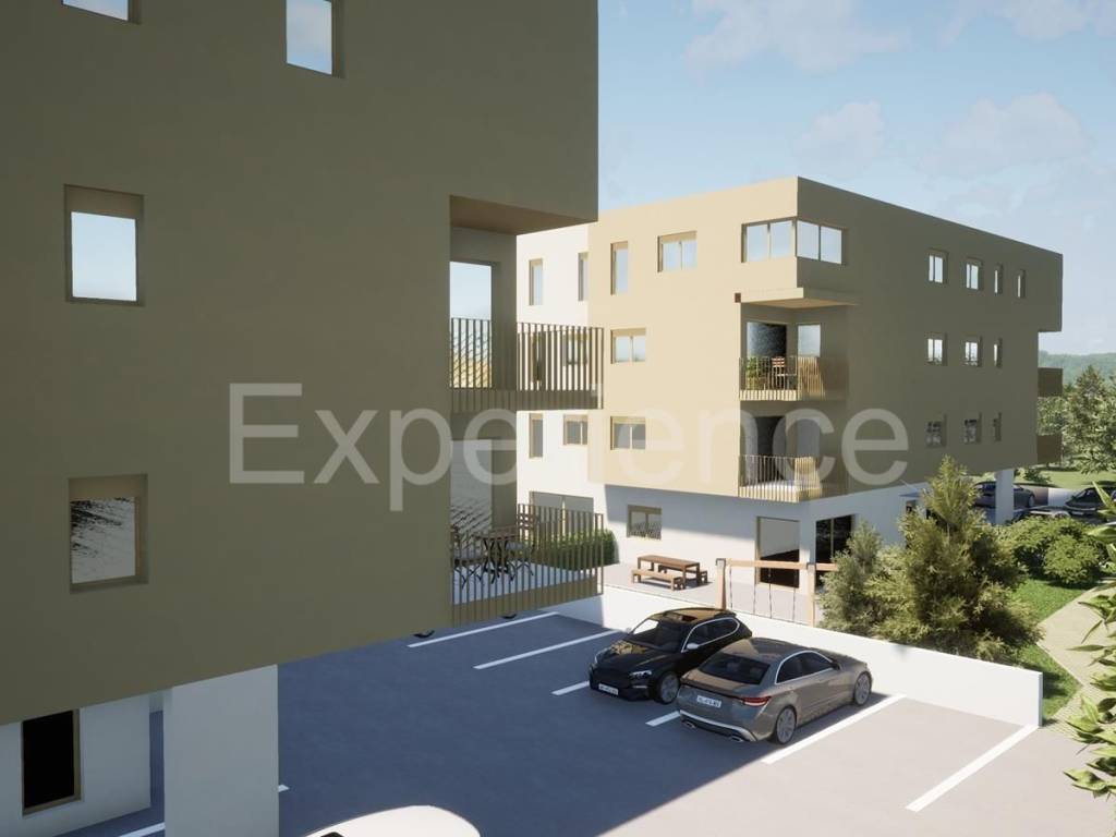 In Tar - cca. 2 km from the sea, in a quiet environment there is an flat under construction, surface of 61.99 m. The apartment is situated on the first floor of a residential building. Contains: entrance hall, an open and bright space where are situated a living room, kitchen and dining room with access to the covered terrace (6.18 m), two bedrooms and a bathroom. The apartment also has a storage room (2.80 m) on the ground floor of the building and 2 parking spaces.