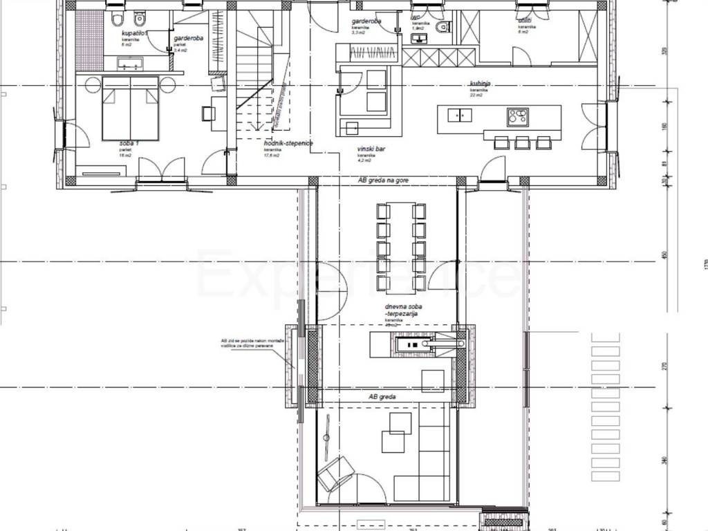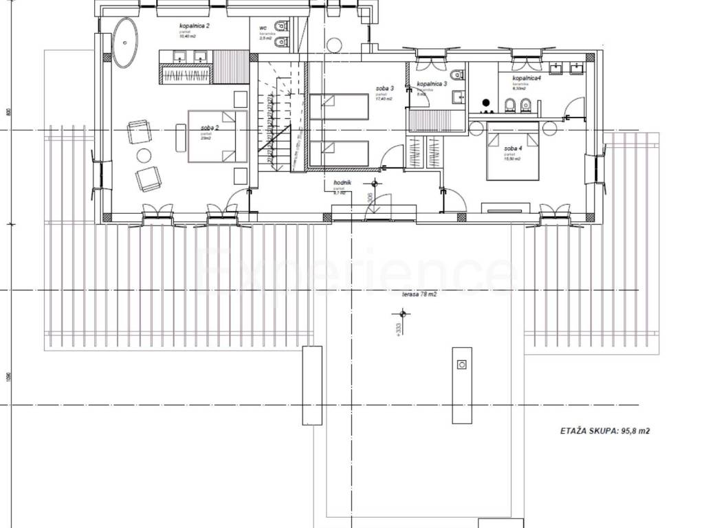 The villa consists of two floors. On the ground floor of the villa are situated an entrance hall, kitchen, dining room, living room, spacious bedroom with private wardrobe and bathroom, toilet and storage. From the entire ground floor of the villa, the glass walls from the interior offer a beautiful view of the pool, garden and panoramic sea views. While on the first floor of the villa there are three spacious bedrooms, each with its own bathroom, and a spacious terrace (78 m) with a jacuzzi.