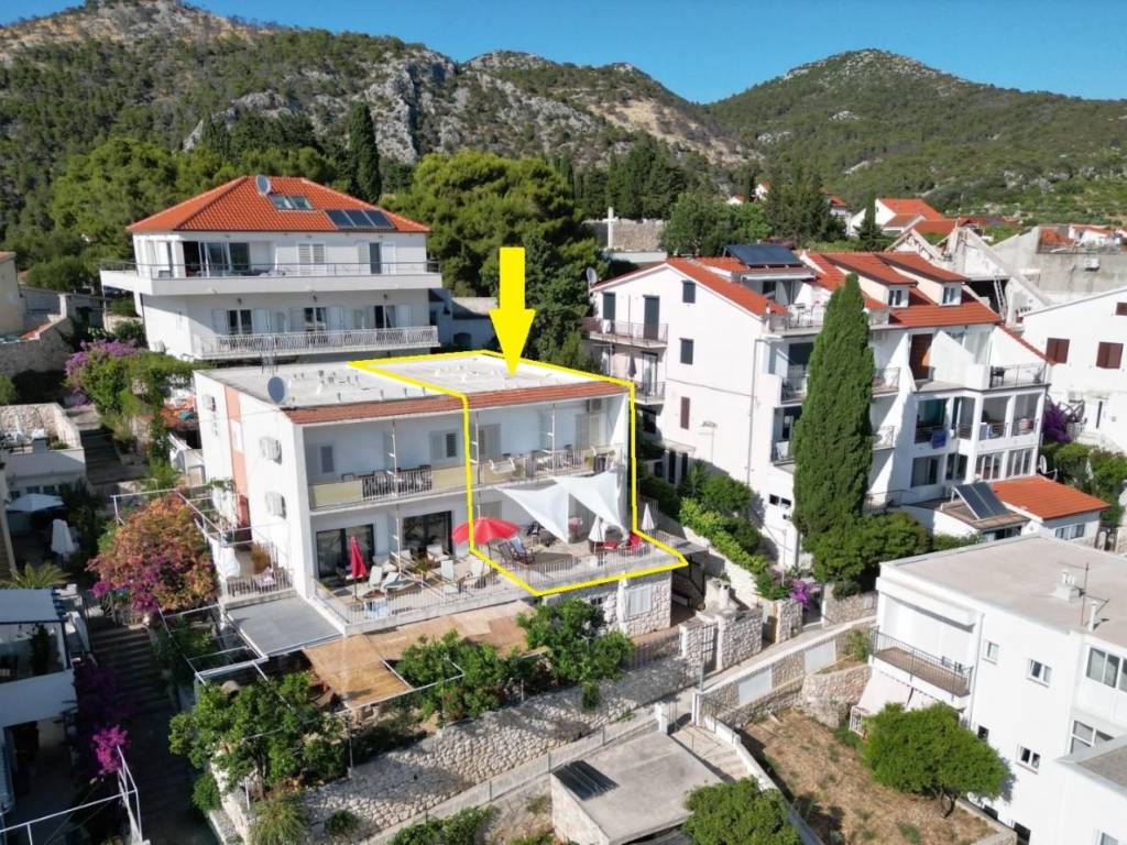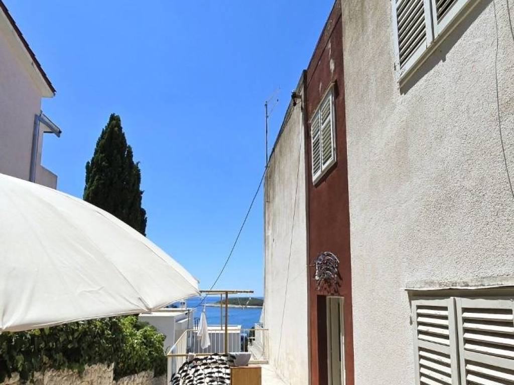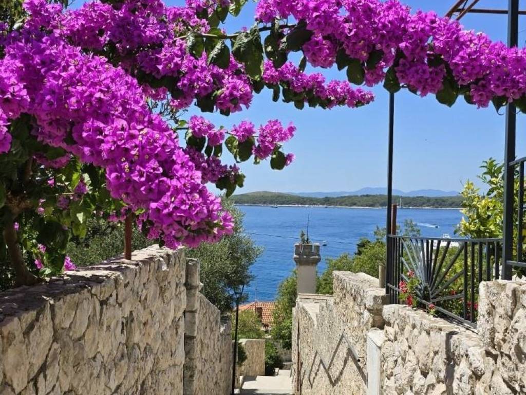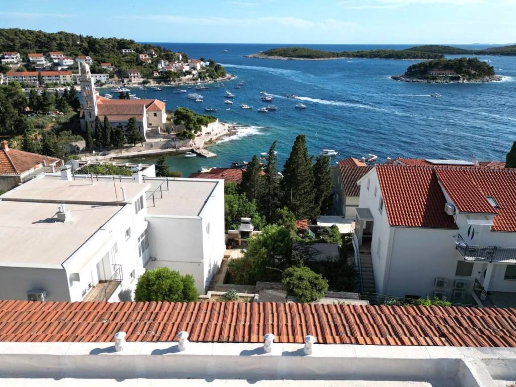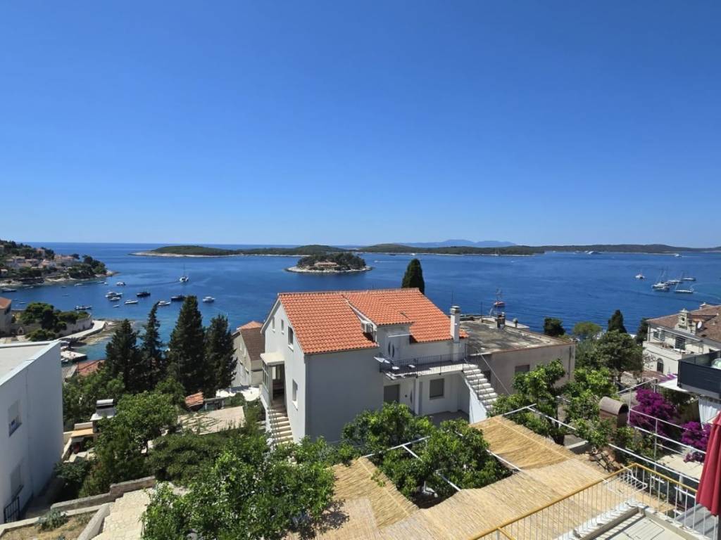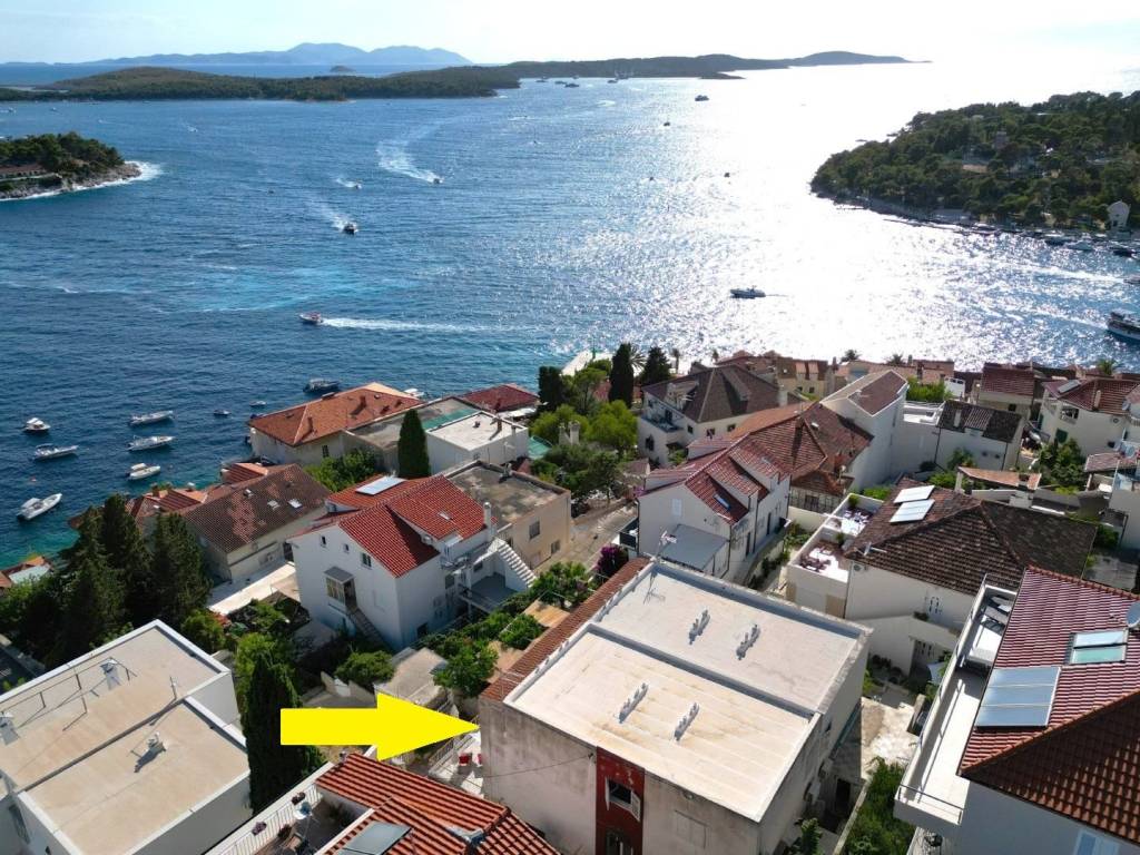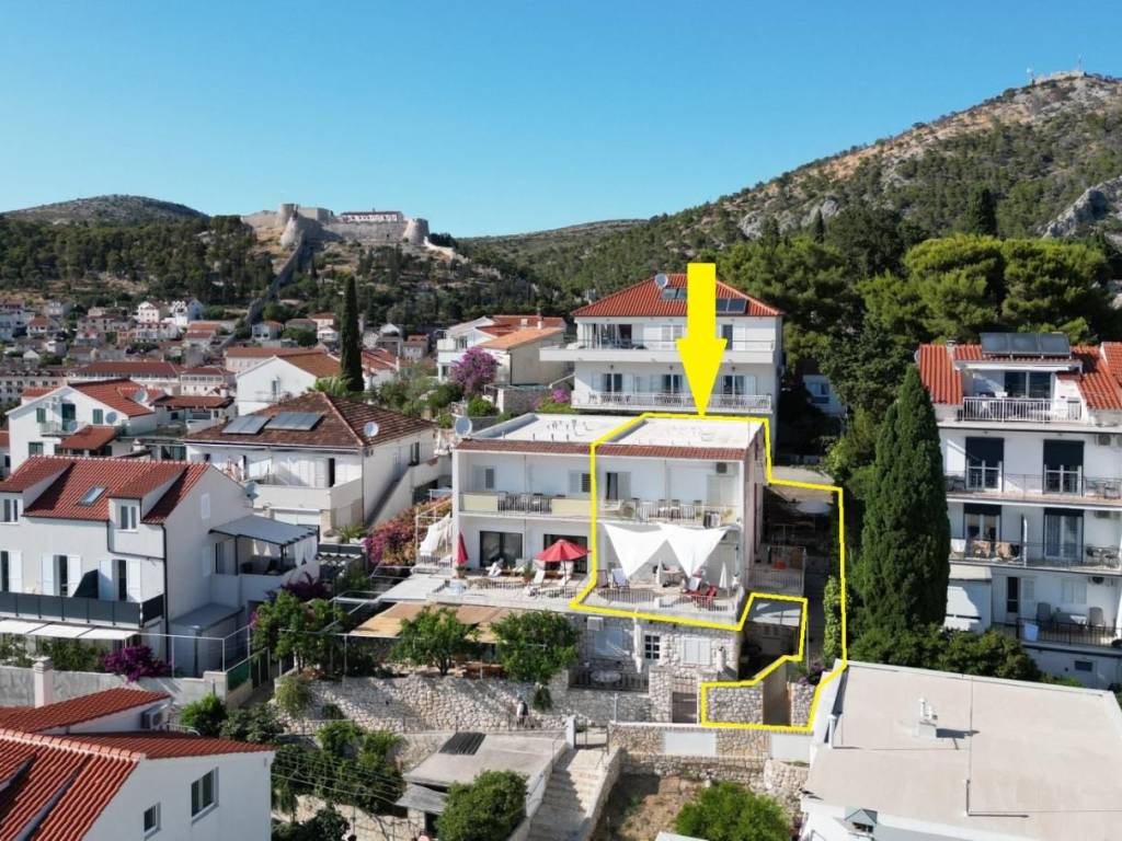 Dvije etaže dvojne kuće na atraktivnoj lokaciji u centru Grada Hvara, s fantastičnim pogledom na more, Paklene otoke, gradsku luku i zalazak sunca sa svih etaža, površine 176 m2, koje se sastoje od 8 soba, 8 kupaonica, velike terase na donjoj etaži, dva balkona na gornjoj etaži, unutrašnjeg stepeništa i ostave, s vrtom i dvorom ukupne površine 75 m2, pravo gradnje još jedne etaže, etažirano, uporabna dozvola, samo 90 metara od mora, južne orijentacije, sa izvrsnim potencijalom - mogućnost tri stana, boutique hotela i sl..