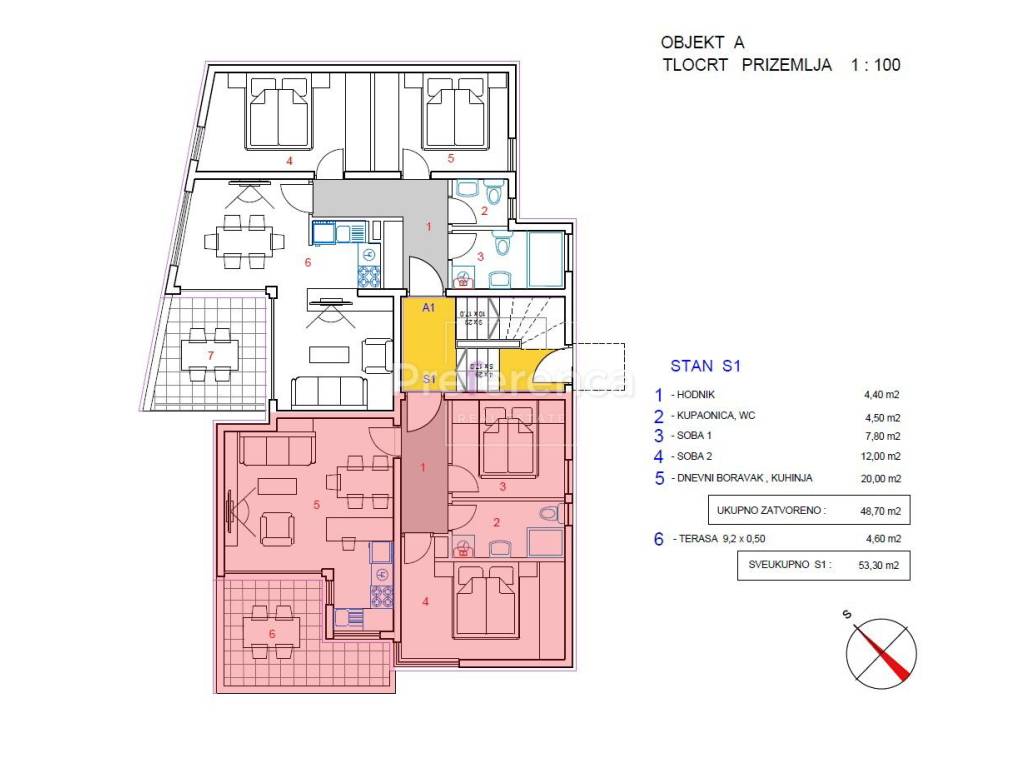 APARTMENT S1 (BUILDING A) — NOVALJA (2ND ROW FROM THE SEA)