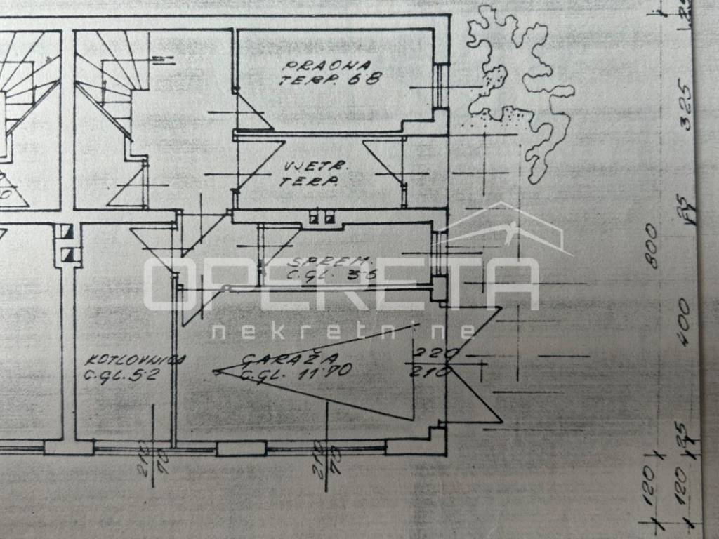 U prodaji se nalazi prostrani višeetažni stan koncipiran kao obiteljska kuća. Prostire se na 4 etaže. U prizemlju je smještena garaža, vešeraj i 3 spremišta. Na 1. katu je smještena kuhinja, dnevni boravak s blagovaonicom, ostava te WC. Na 2. katu su 2 spavaće sobe, radna soba te kupaonica s WC-om. U potkrovlju je mala garsonijera koja se sastoji od dnevnog boravka s kuhinjom i blagovaonicom te kupaonice s WC-om.