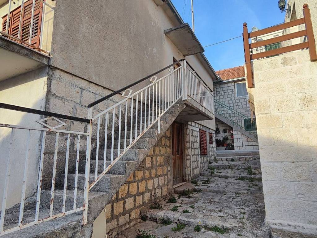 Trogir, Ciovo, Okrug Donji, old stone house for sale that offers unlimited possibilities for conversion into a weekend house, family house or as a tourist facility. The house of 120m2 of living space, on two floors, a balcony and a terrace with a view. On the ground floor there is a hallway, kitchen with living area, toilet and bathroom and room on the south. On the first floor: entrance hall, small toilet, two rooms and a balcony along the entire length. From this floor, wooden stairs lead to the attic and a terrace. Everything is for complete decoration. Distance from the sea 350m2, south orientation. In front of the house there is a public parking lot, immediately available. Ideal for family life or as an investment.