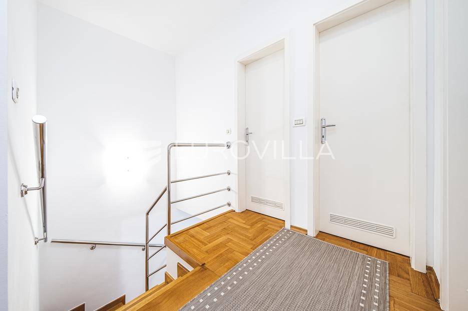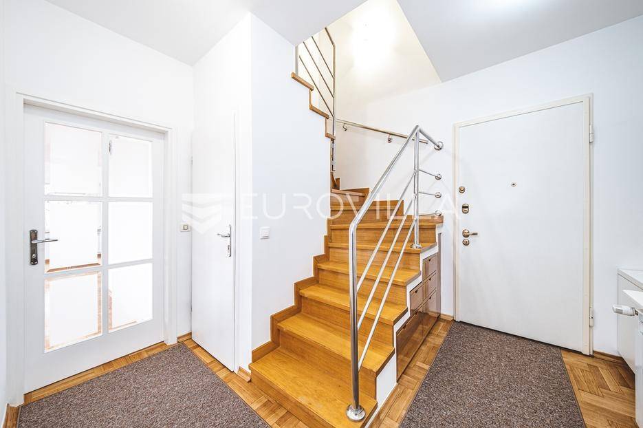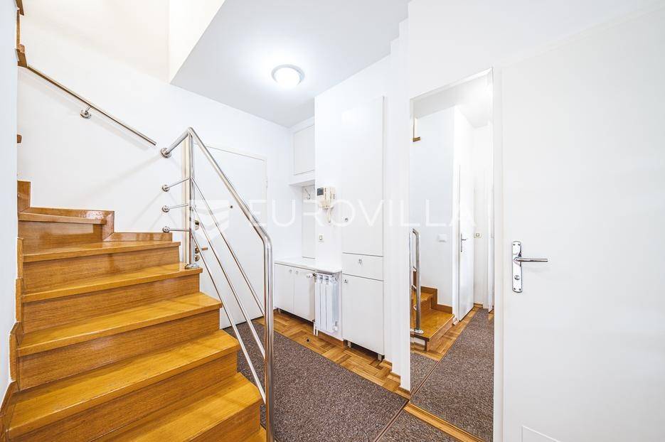Prva etaža se sastoji od ulaznog dijela s ugradbenim ormarima, prostranog dnevnog boravka s kuhinjom i blagovaonicom s izlazom na terasu, ostave, gostinjskog toaleta dok se druga etaža se sastoji od tri spavaće sobe, walk-in ormara, jedne kupaonice te terase. Kuhinja je ugrađena sa svim potrebnim uređajima. Kupaone su namještene s kupaonskom opremom. Etažno plinsko grijanje, klimatiziran te pun svjetlosti. Stanu pripada garažno mjesto 15,61 m2 (7,30 m2). Idealna lokacija u neposrednoj blizini svih potrebnih sadržaja. Ostale informacije na upit.