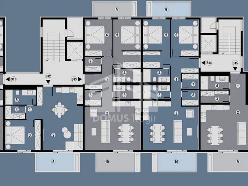 We are offering for sale a two-bedroom apartment on the first floor of a completed residential building in Okrug Gornji. The apartment is marked "STAN 11".