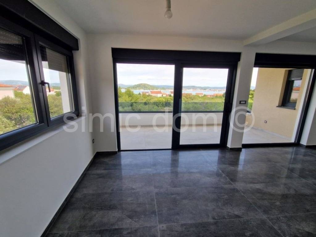 For sale is an attractive apartment placed on the first floor of a new building completed in 2025, in an attractive location in Murter. The building is only 300m from the beautiful pebble beach and the center itself. The apartment has a total net usable area of 71.89 m2 and stands out for its functional layout. It consists of a spacious living room with kitchen and dining room, two bedrooms, bathroom, and the living area leads to a spacious paved terrace and courtyard of over 80 m2 with a beautiful view, ideal for enjoying summer evenings. It has an outdoor parking space included in the price. The apartment has plenty of natural light, and the building is built to a very high quality and guarantees modern construction standards and top energy efficiency, confirmed by the energy certificate A. Security doors provide additional security, while underfloor heating and air conditioning are there for maximum comfort throughout the year. Since it is located in a great location close to all amenities, with a beautiful view and proximity to the sea, the apartment is excellent both for permanent residence and as an investment for tourist rentals. Ownership is in order.