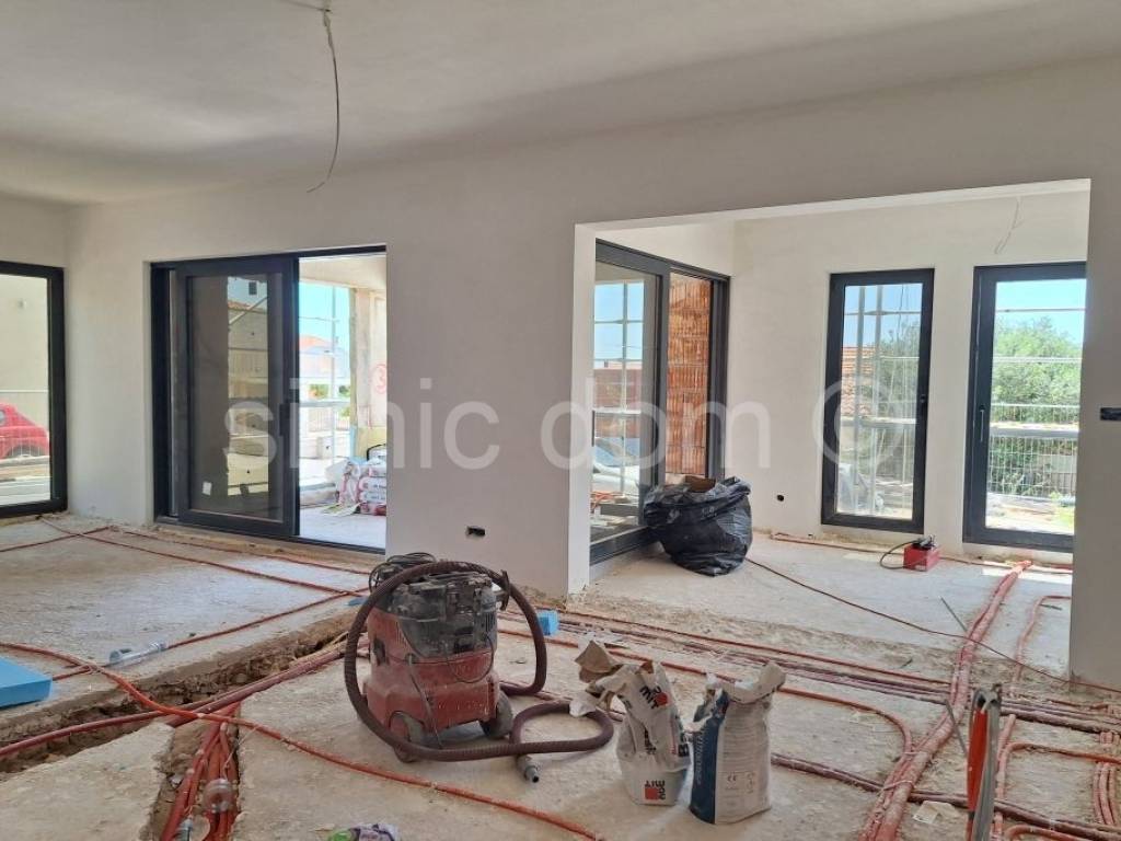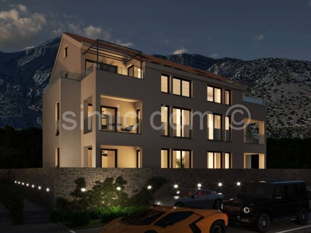 We are mediating the sale of an excellent, high-quality and spacious apartment in a new building that will be completed by the end of 2025. The apartment is placed on the ground floor and has a total area of 88 m2. The apartment consists of an entrance area, a hallway, two bedrooms, two bathrooms, an impressive living room with kitchen and dining area, and two loggias. However, the real value of the apartment lies in the large garden that will have a private jacuzzi and plenty of space for pleasant summer evenings. This is an extremely modern space, designed to reflect the high functionality of the space in combination with the highest quality of construction and equipment: underfloor heating throughout the apartment, ceramics from trusted manufacturers, latest generation joinery, alarm, specially designed building environment... There is also a shared pool, and the price includes an outdoor parking space. The location is approximately 5 minutes walk from the sea, while all amenities for both summer holidays and year-round living are nearby. The investor is a legal entity, and the ownership is in order.
