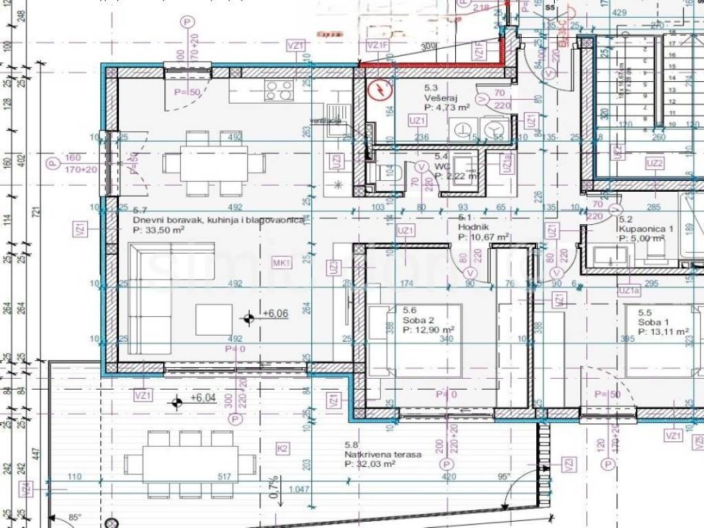 An apartment located in Tribunj itself, only 550m from the beach and close to all amenities, shops, cafes and restaurants, is for sale. Apartment S5 is placed on the second floor of the building and has a total floor area of 114 m2, of which 32 m2 is the terrace. The net usable area of the apartment with the coefficients for the covered terrace and parking included is 103 m2. The apartment consists of a hallway, bathroom, toilet, laundry room, two bedrooms, kitchen with dining room and living room in one unit with access to the terrace. The apartment also has an outdoor parking space included in the price. The building is designed according to the highest construction standards, with an emphasis on quality and comfort. High-quality materials are used, including top-quality ceramics, parquet floors and sanitary ware. Underfloor heating is installed throughout the apartment, while air conditioners are installed in all rooms and the living room. PVC joinery comes with electric lifts and mosquito nets, and the facade is covered with 10 cm thick polystyrene, ensuring excellent thermal insulation. Complete completion of the works is scheduled for spring 2026. Tribunj is a picturesque Dalmatian town located along the Adriatic coast. It is known for its narrow stone streets, authentic Mediterranean ambience and crystal-clear sea. The town offers the perfect balance between a peaceful holiday and proximity to tourist centers such as Vodice and Sibenik. Tribunj has a modern marina, numerous traditional taverns, restaurants with local specialties and beautiful beaches. It is an ideal destination for those looking for relaxation, but also an active holiday with numerous cycling and hiking trails.