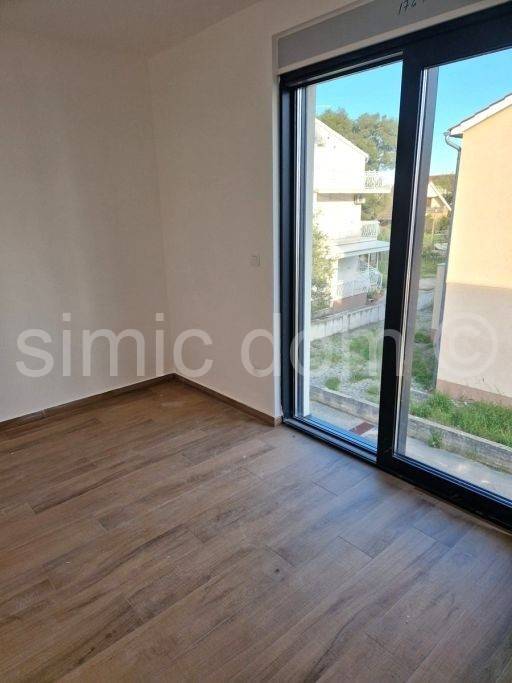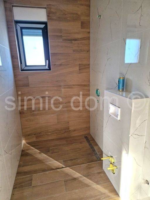 For sale is an excellent newly built house in a very attractive location just 250m from the beach and a 10-minute walk from neighbouring Vodice. It is a semi-detached, family house of modern design in a very quiet street with minimal traffic. The house has a usable area of 128 m2 and extends over two floors: ground floor and first floor, and has a 105 m2 yard with two parking spaces. The ground floor consists of a hallway, toilet, utility room, open-concept kitchen with dining room and living room that has access to the terrace and yard with swimming pool. On the first floor there are three bedrooms, two bathrooms and a storage room / laundry room. The house is built with extremely high-quality materials, equipped with security doors, ALU lift-sliding walls with electrically controlled roller shutters, mosquito nets, glass railings, electric underfloor heating in the bathrooms as well as in the kitchen and living room, each room with air conditioning and TV/SAT connection. Hot water heating is via a boiler located in the storage room, preparation for video surveillance for two external cameras. The stairs are cantilever (floating) steel structures with wooden cladding and anthracite-coloured steel rod railing. The 2.8m x 6.4m swimming pool is lined with ceramic mosaic tiles, and apart from the green part of the yard, the surroundings and parking lot will be paved with concrete pavement. Excellent location close to all amenities and quality construction make this property a really good investment.