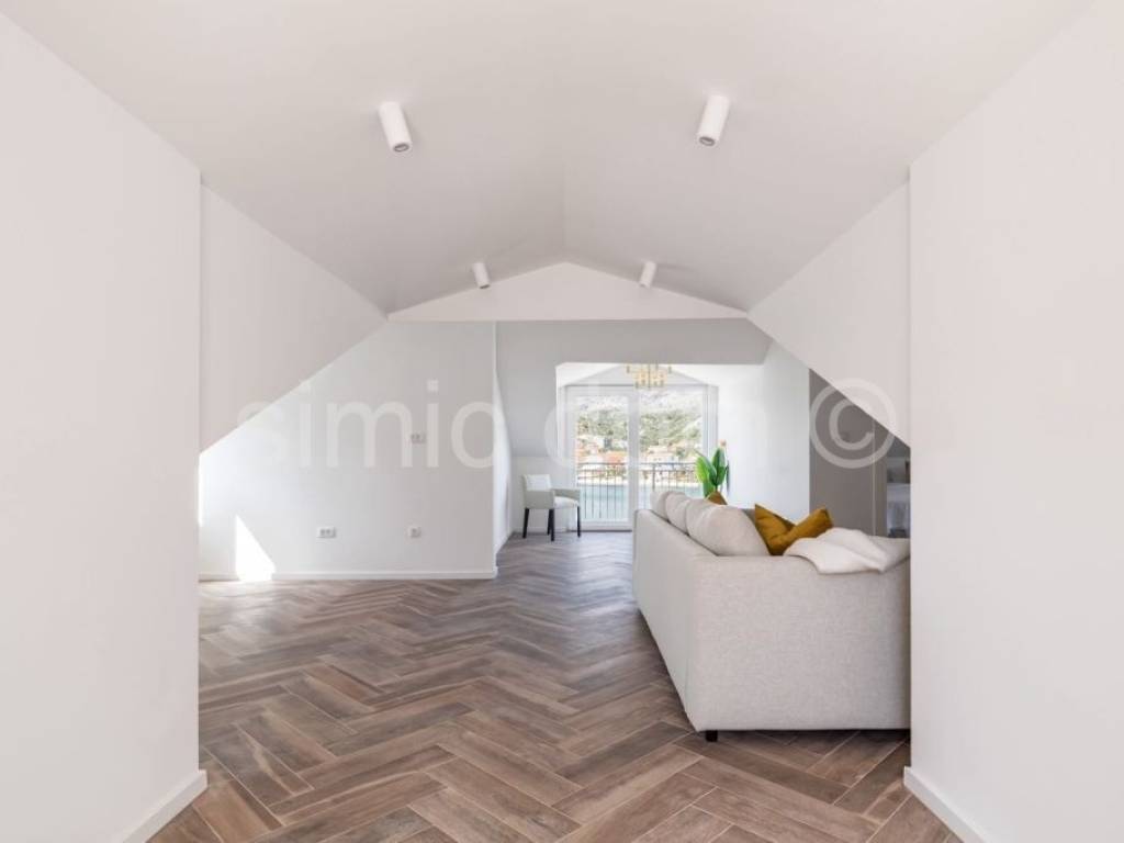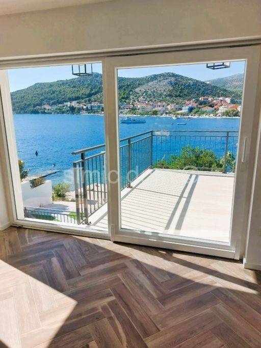 We mediate in the sale of a newly renovated detached house in a quiet place near Trogir, in Seget Vranjica. The house is located by the beach, which is ideal for families with children and buyers who want privacy and peace, since there is no road between the house and the beach. The house consists of three apartments, which together have a total net usable area of about 200 m2, while the total floor area of the house is about 350 m2. Each apartment has a separate entrance, a terrace or a balcony and a parking space. Each apartment offers a beautiful view of the sea. One of the apartments is equipped and furnished and ready to move in immediately, while the other two apartments need to be equipped and furnished. The ground floor apartment consists of a bathroom, bedroom, walk-in closet, terrace and a large living room with a dining room and kitchen. On the first floor there is an apartment with a bathroom, toilet, three bedrooms, two terraces and a living room with a dining room and kitchen. The attic consists of a bathroom, toilet, two bedrooms, a laundry room, two balconies and a large living room with a dining room and kitchen. The property is located within walking distance of the town of Trogir, which can be reached by a promenade along the sea, and is a 15-minute drive from the airport. All amenities such as shops, cafes and restaurants are nearby. The ownership is in order.