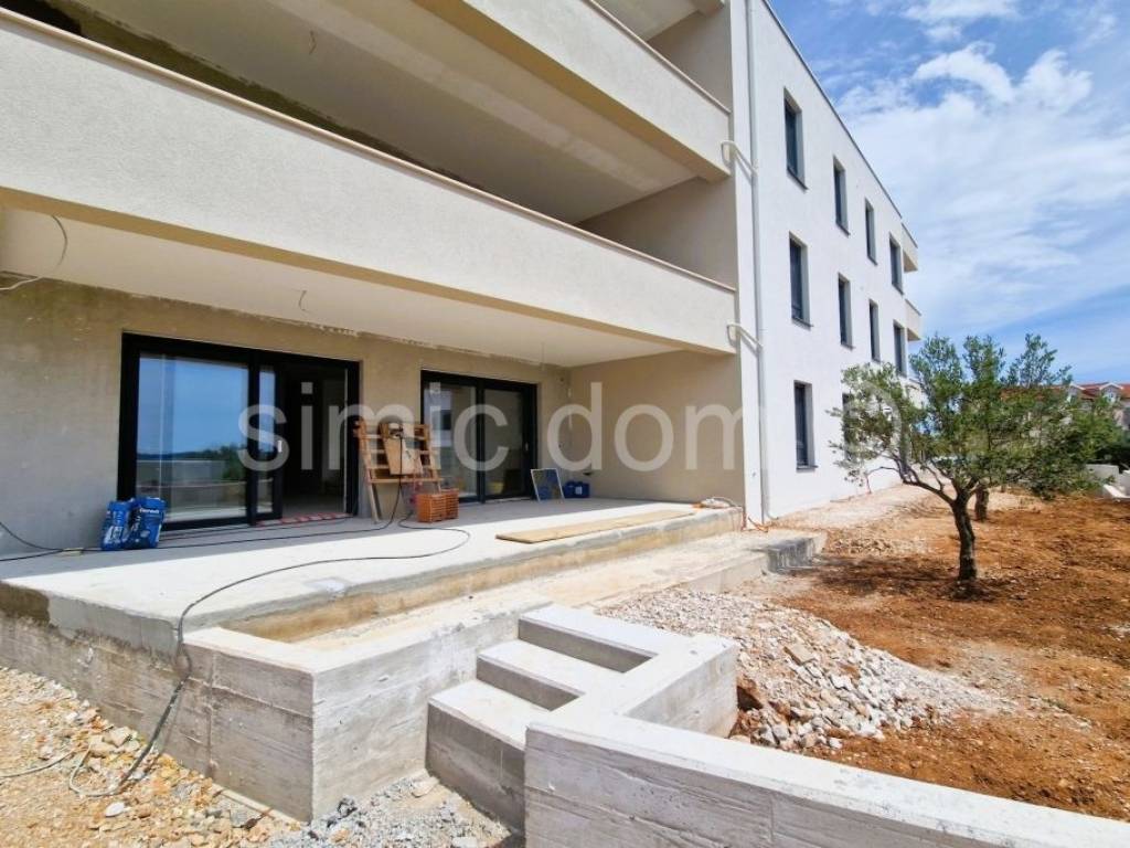 For sale is a great apartment in beautiful Tribunj, just 450 meters from the sea. This is a new project situated in a quiet street, yet close to all amenities, the center with shops, restaurants and not far from Zamalin beach, which is less than a 5-minute walk away. The neighboring town of Vodice is only 15 minutes away on foot. The apartment is placed on the ground floor of the building, has a southwest orientation and a total floor area of 97.50m2, of which 75m2 is internal space. The special value of this apartment is its spacious garden of approx. 50 m, ideal for relaxing and enjoying the outdoors. The apartment consists of a hallway, two bathrooms, two bedrooms and an open-concept kitchen with a dining room and a living room with access to a spacious terrace. An outdoor parking space is included in the price of the apartment, which is an additional advantage. The building will be equipped with modern and high-quality materials. The apartment will have underfloor heating throughout the entire space (except in the bedrooms), electric blinds and mosquito nets. The building will also be equipped with an elevator. Move-in is planned for summer/fall 2025, and the property is in good order and free of encumbrances.