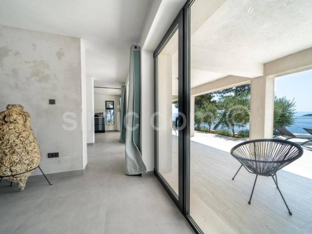 For sale is an enchanting modern villa on the island of Brac, located directly next to the beautiful sea in the first row. The property has an area of 314 m2 and is located in a beautiful natural environment, surrounded by soothing, typically Mediterranean vegetation. The house consists of two floors. The ground floor consists of a kitchen with a dining room, a living room with a fireplace, a bathroom and three storage rooms. An internal staircase leads to the first floor of the villa, which contains a total of 5 bedrooms, four bathrooms, a living space and a spectacular terrace offering a panoramic view of the sea. The spacious plot of 1140 m2 includes an infinity pool with a spacious sun deck and lounge area as well as 4 parking spaces. The property also includes a boat mooring.