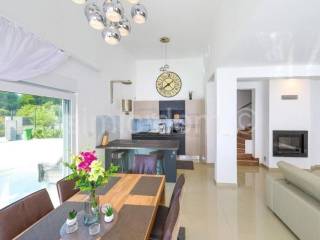 We mediate in the sale of a newer villa situated in a location very close to the sea, offering a beautiful view and exceptional peace. The surface of the villa is 270m2, and it consists of a ground floor and the first floor. The ground floor offers a bedroom, a toilet, a bathroom, a storage room and a very impressive living room with kitchen and dining room. From this part you can reach a paved terrace, suitably equipped with a barbecue and a summer kitchen. On the first floor there are three more bedrooms, two bathrooms and a small storage room. On the flat roof there is a truly spectacular swimming pool with space for equipment, shower, toilet and a beautiful terrace, ideal for quiet summer evenings. The entire villa is surrounded by a carefully maintained garden full of greenery, and a spacious parking space is provided as well. The villa itself is built exclusively with high-quality materials (excellent facade, insulation, sanitary ware and ceramics from proven contractors), and is equipped with very beautiful and functional furniture and appliances. Proximity to the sea, peaceful location, exceptional quality, beautiful view and a series of exclusive solutions make this villa a fantastic choice. Ownership in order.