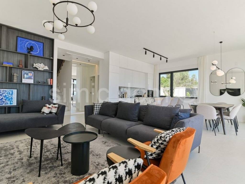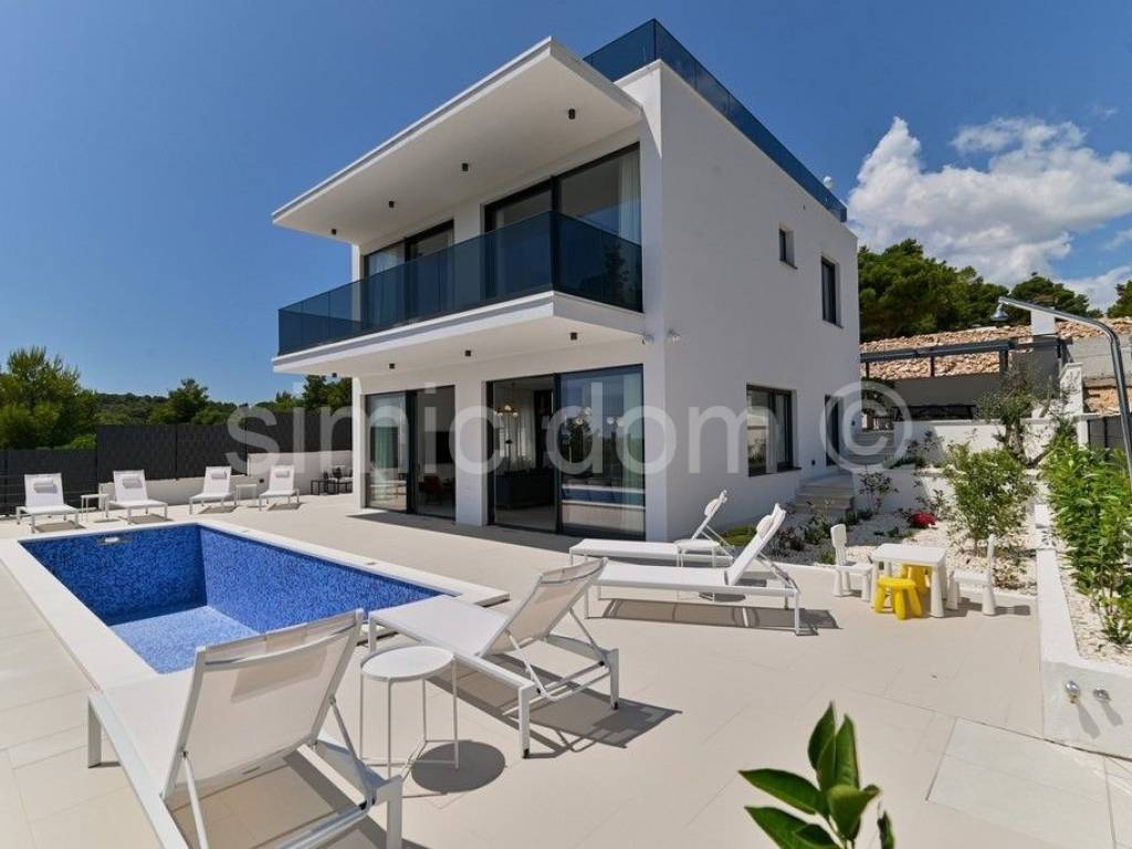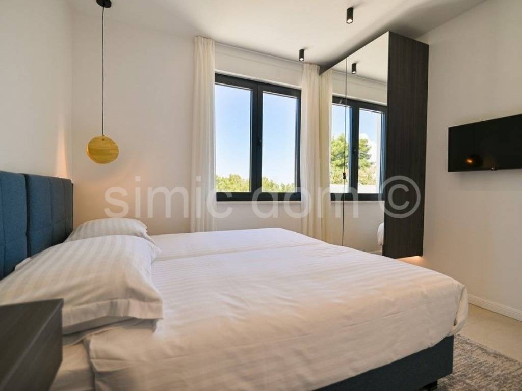 For sale is a newly-built villa with a spectacular view of the sea and surrounding islands, located only 100m from the sea. The villa was built on a plot of 425m2 and has a total net area of 180m2, i.e. 204m2 of living space spreading over two floors. It is sold with top quality equipment and furniture. There is underfloor heating throughout the villa, and the villa has solar panels, a heated swimming pool, a summer kitchen and four outdoor parking spaces. On the ground floor of the villa there is a bedroom with a bathroom, a living room with a fantastic view of the sea, a kitchen with a dining room, a gym and a guest toilet. The living room opens onto a beautiful paved garden with a swimming pool, sunbathing area, fireplace and sitting area. Upstairs there are three bedrooms with terraces, each with its own bathroom, additional toilet, technical room and laundry room. The owner requested permission to build another floor. This excellent property is ideal both for vacation and for investment in tourism. Ownership in order.