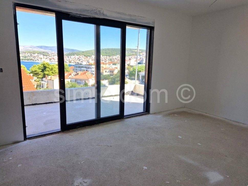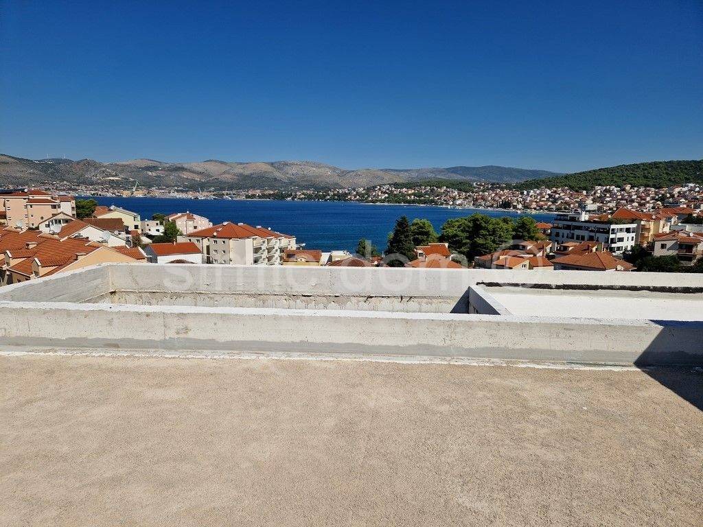 For sale is a penthouse apartment located on the second floor of a new building in Okrug Gornji. The building is located 200m from the main beach in Okrug, in a quiet street and close to all necessary amenities. The apartment has a total internal area of 72m2, plus two more terraces: 13m2 terrace within the apartment and another 74m2 roof terrace, i.e. 97.30m2 net area with terrace coefficients. The apartment consists of a hallway, three bedrooms, two bathrooms, a living room with a kitchen and a dining room with access to a spacious terrace. The building has an elevator, which is an important advantage. The apartment also has an outdoor parking space included in the price. Completion of construction is scheduled for spring 2024, and the apartment will be equipped with air conditioning in every room, underfloor heating, aluminum windows with electric lifters. The sale is carried out on a "turnkey" basis, which includes installation of ceramics, laminates, installation of sanitary ware, etc..