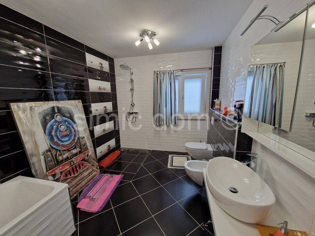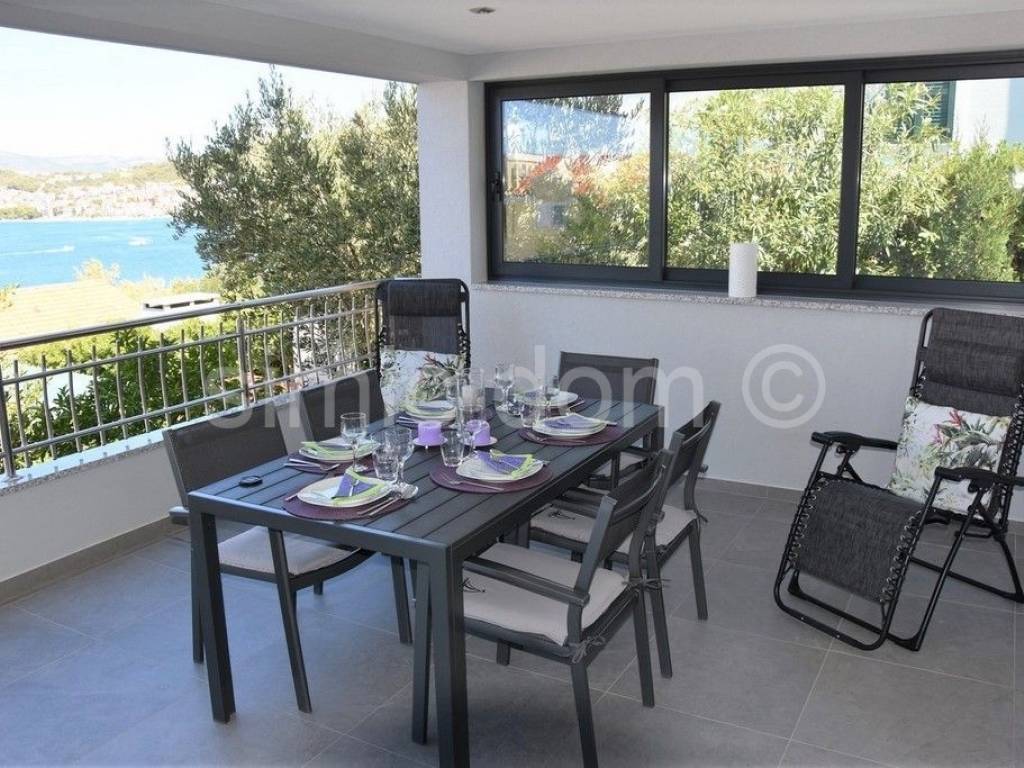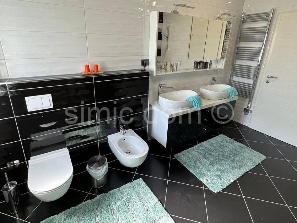 For sale is a beautiful, detached house with superbly equipped and furnished three apartments, only 150m from the sea and close to all facilities. The house was completely renovated a few years ago and has a total net area of 608m2, i.e. 690.51m2 gross. The house extends over 4 floors. In the basement of 120m2, there is a garage, a bathroom and a larger and smaller storage room. On the ground floor there is a large apartment of 135m2 net area. The apartment has a hallway, two bedrooms, three bathrooms, a large terrace and a beautiful large furnished space that functions as a summer kitchen with a fireplace. On the first floor of the house there is an apartment of about 80m2 net area with two bedrooms, two bathrooms and a large kitchen with dining room and living room, as well as a terrace. On the second floor of the house there is a large two-level apartment with a spectacular panoramic view. The apartment has an area of over 230m2 net. Its upper floor consists of an entrance hall, a large living room with a dining room, a large modern kitchen, a bathroom, a bedroom, a storage room and a large terrace. A staircase leads to the lower floor - which is at the level of the first floor, and there is another bathroom, a study and a bedroom. The yard contains a beautiful garden, and in addition to the spacious garage, there are also outside parking spaces for three more cars. This property boasts really large rooms, an open concept, modern design along with top-quality equipment and materials in all apartments. The property is an already established rental business, but it is also great for year-round living, especially for larger families. Ownership in order.