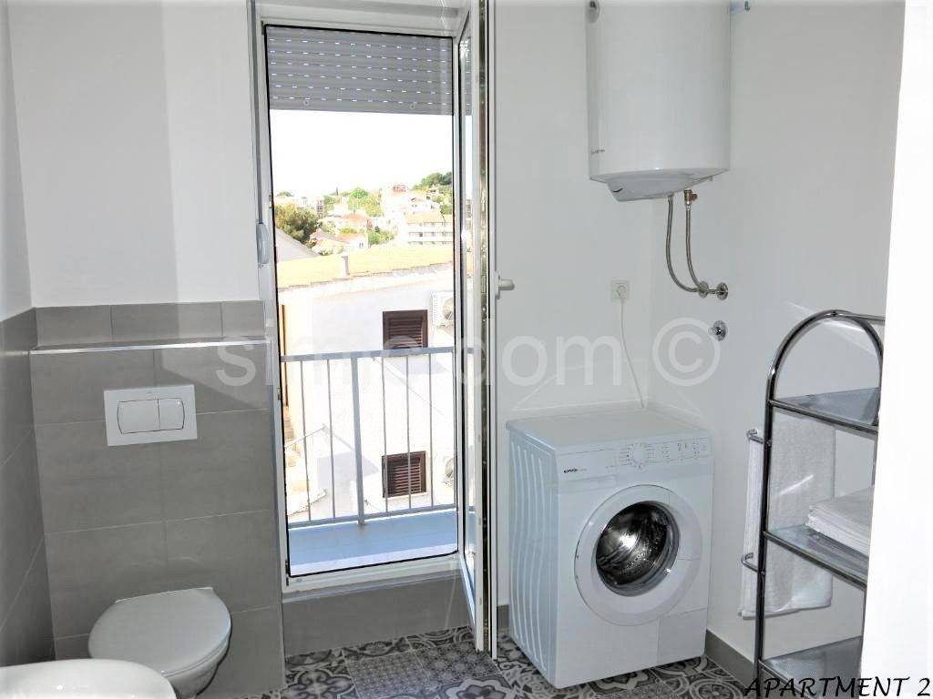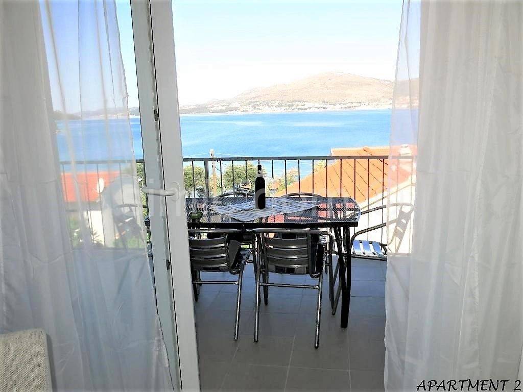 For sale is a semi-detached apartment house in an attractive location just a few steps from a beautiful pebble beach in Okrug Gornji. The house has a about 326m2 of gross area, that is, 233m2 of internal living space and numerous terraces with a beautiful view of the sea. The house consists of three floors and each level has a separate entrance via an external staircase. On the basement floor there are two garages, which are a great advantage in Ciovo, and can be converted into apartments, there is also a cellar space that currently serves as a wine cellar. On the upper ground floor of the house there is an apartment consisting of a hallway, two bedrooms, a bathroom, a kitchen and a large living room with a dining room. On the first floor there is also an apartment with two bedrooms, a hallway, two bathrooms and an open-concept kitchen with a dining room and a living room. Along the upper floors, the living area opens onto large terraces, while there is also an additional balcony on the first floor. The property also features a carefully landscaped garden with Mediterranean plants and an area to park up to 4 cars. This property is great as an investment for an already established rental business, but also as your own vacation property since it is very close to the beach and all necessary facilities. Ownership in order.