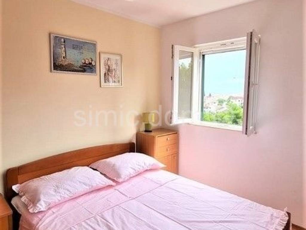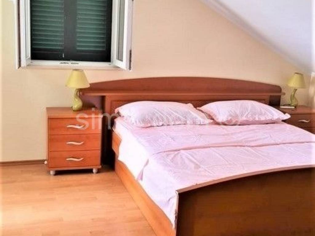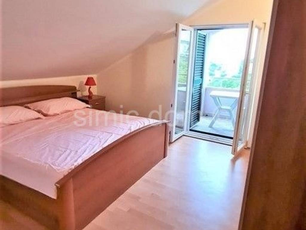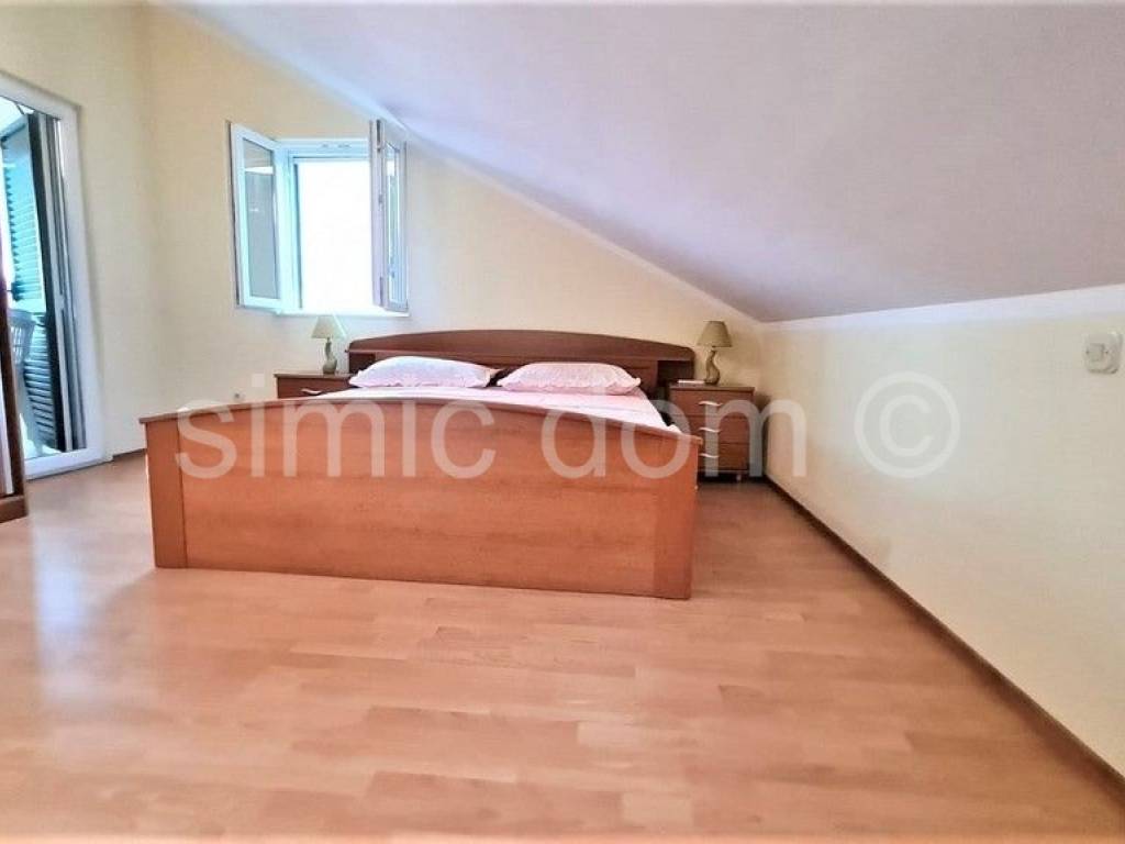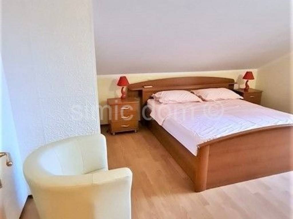 We are mediating the sale of a luxurious three-bedroom apartment in an excellent location on the island of Brac. The apartment extends over two floors, in nature the second floor and the attic space, with a total surface of 121 m2. Each floor enjoys a wonderful view of the sea that cannot be obstructed in the future. On the second floor there is a kitchen with a dining room, a living room, a bedroom, a storage room, a toilet and a bathroom. The living room and dining room also lead directly to a spacious loggia. A semicircular staircase leads up to the attic floor, with one more bathroom and two spacious bedrooms with access to another loggia. The apartment is furnished and equipped, and every room is air-conditioned. The apartment also has a garage spot with a surface of about 20 m2. Ownership in order.