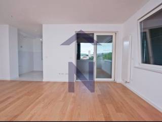 Living room with kitchen and dining area, with access to a spacious loggia