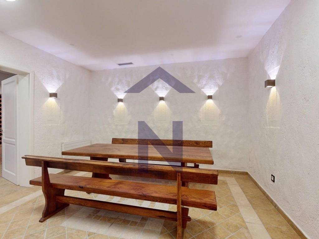 The driveway to the villa is heated, paved with Kashmir white stone, the access ramp to the garage is heated with an anti-slip finish, the outdoor terrace is paved with ceramic tiles and Travertine stone, the outdoor terrace with a barbecue area, the pool area is paved with Travertine stone. The villa is a smart home (heating, cooling, video surveillance...), with indirect and direct lighting, Murano chandeliers, underfloor and wall heating. The villa is ideal for a residence but also suitable for business purposes.