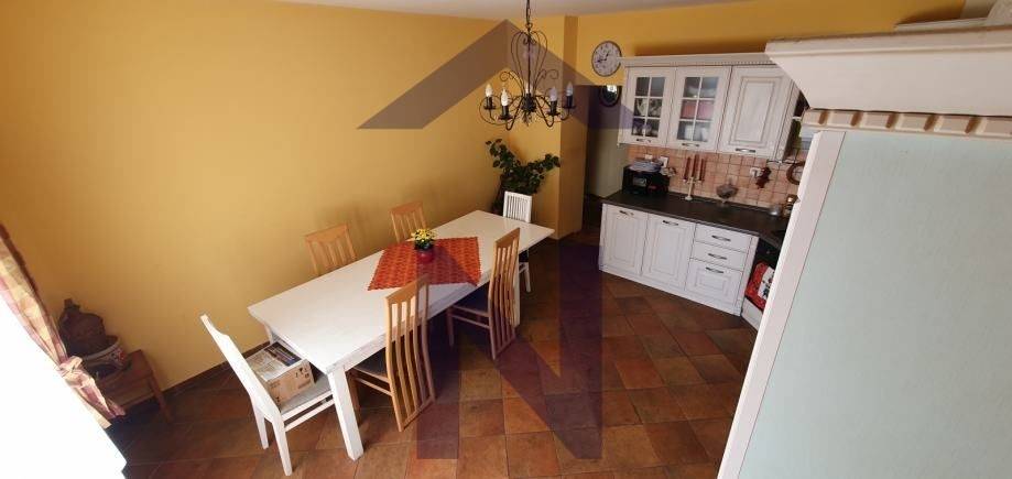 U prizemlju se nalaze 3 spavaće sobe, kupaonica, ostava, vešeraj i hodnik. Također se nalazigaraža, zaseban WC, spremište i parkirna mjesta.Na katu se nalazi dnevni boravak s blagovaonicom, rustikalna kuhinja, balkon, kupaonica, smočnica i natkrivena terasa s pečenjarom površine 70 m2.