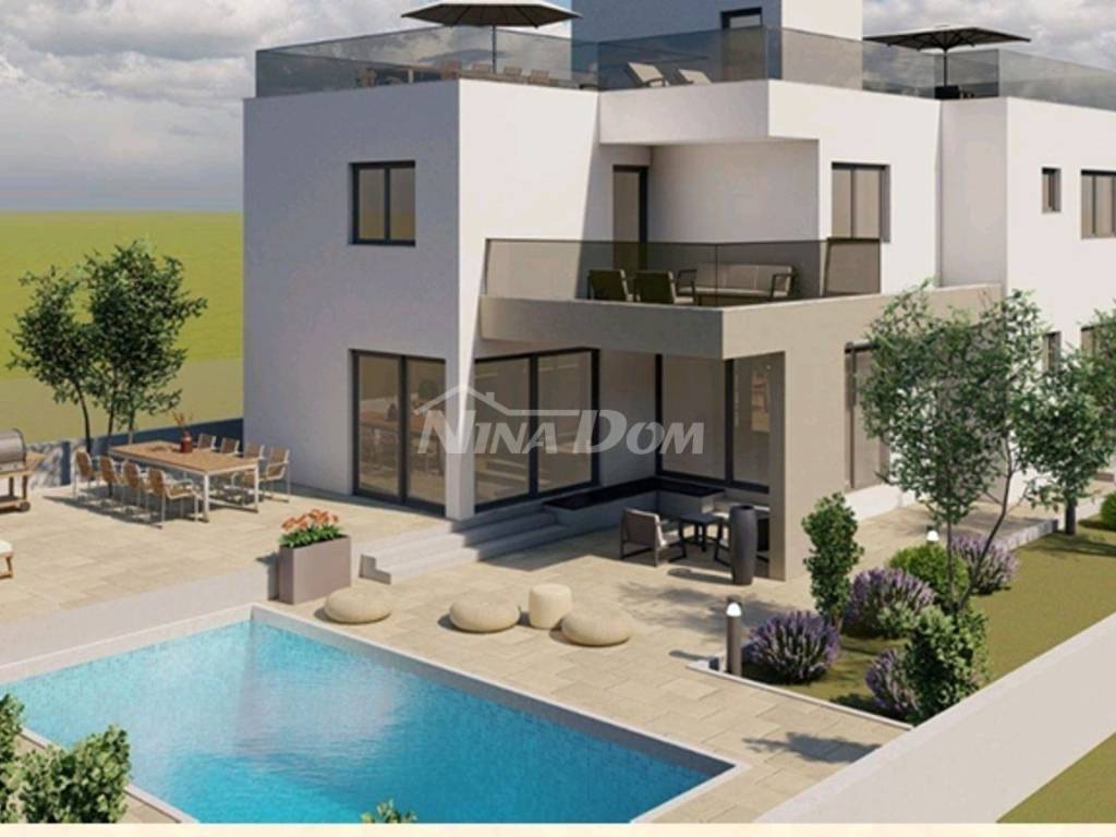Prodaje se villa u mjestu Poljica brig nedaleko Zadra.Objekat je u trenutnoj izgradnji i predviđeni završetak je ljeto 2024 godine.Na okolišu se nalazi parking ,vrt i bazen sa sunčalištem.U prizemlju kuće se nalaze hodnik,kuhinja sa blagovaonom i dnevnim boravkom,fitness soba i kupatilo,te natkrivena terasa.Na katu se nalaze četiri spavaće sobe sa dva kupatila,praona rublja i terasa.Iz glavne spavaće sobe se izlazi na prostranu terasu.Na krovnoj terasi će biti izvedena priprema za pergolu i opremljena jacuzziom.Kuća če biti opremljena Mitsubishi griijanje i hlađenje,uspomoću dizalica topline,kao i pripreme tople vode.Svaka prostorija će biti opremljena i klima uređajem.U dnevni boravak su predviđene keramičke ploćice.Prozori i vrata su Aluminijska,sa trostrukom termo izolacijom.Bazen će biti opremljen toplinskom pumpom.Za sva dodatna pitanja i obilazak stojimo na raspolaganju.